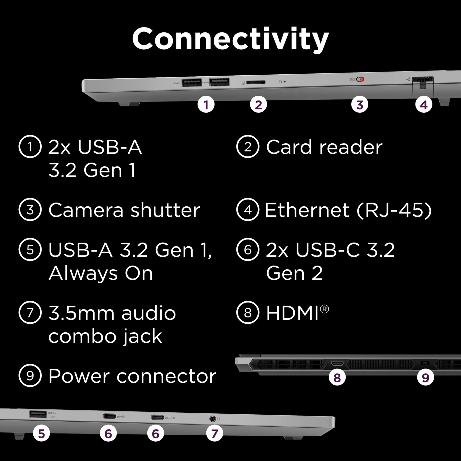 - Multiple Connectivity Options: Features USB-C, USB-A, HDMI, and Ethernet ports for versatile connectivity with peripherals.