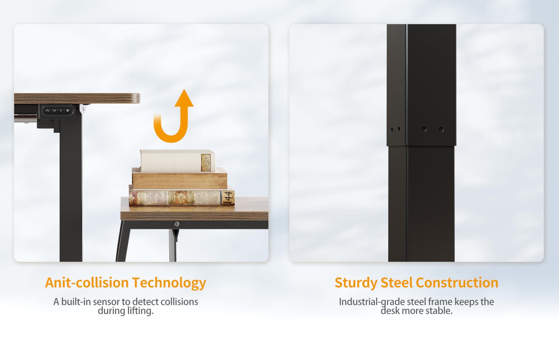 Electric Height Adjustment: Effortlessly adjust the desk height from 28 to 48 inches with the push of a button, allowing for seamless transitions between sitting and standing.