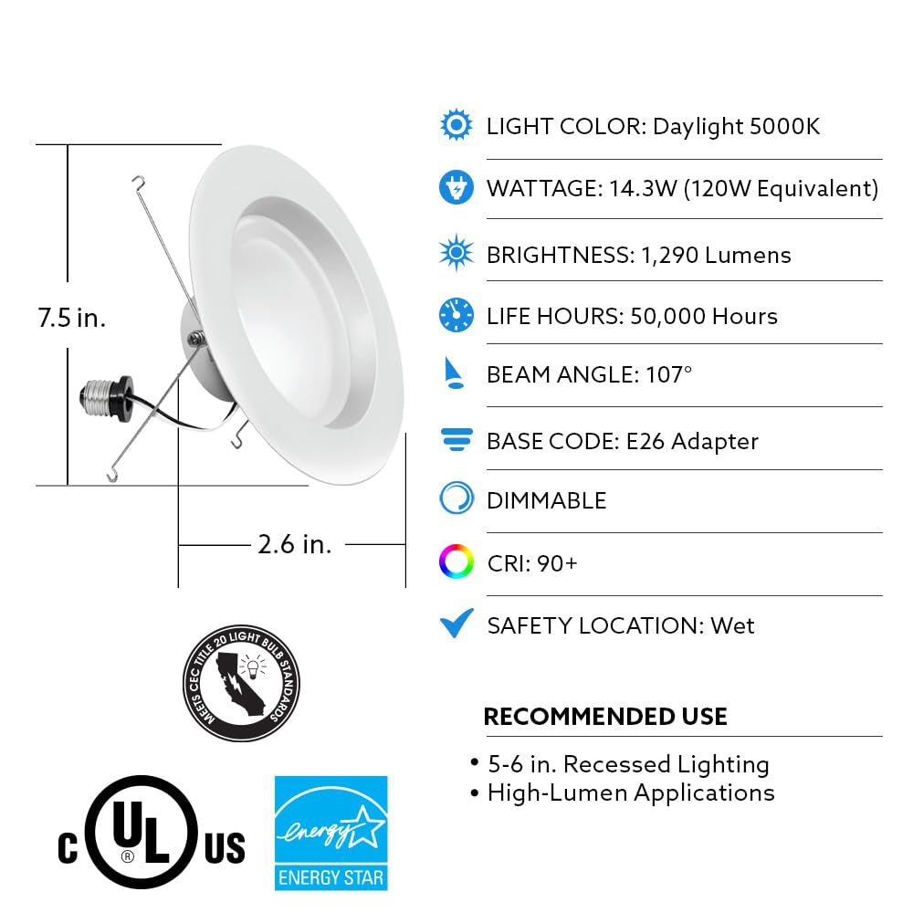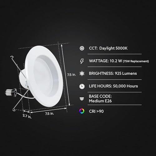 • Versatile Compatibility: Fits most standard 5-inch and 6-inch recessed housings, making it an adaptable choice for various settings.