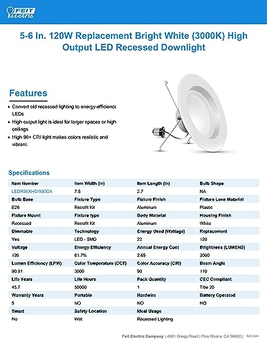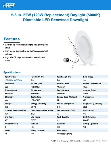 Transform your lighting experience with the Energy Efficient LED Downlight Retrofit Kit featuring an adjustable baffle trim from Feit Electric. This innovative solution is perfect for anyone looking to upgrade their old recessed downlights, delivering superior brightness and energy savings. Designed for both residential and commercial spaces, this retrofit kit enhances ambiance while significantly reducing energy costs. With its sleek design and versatile trim options, it stands out as a reliable, high-quality lighting solution for modern needs.
