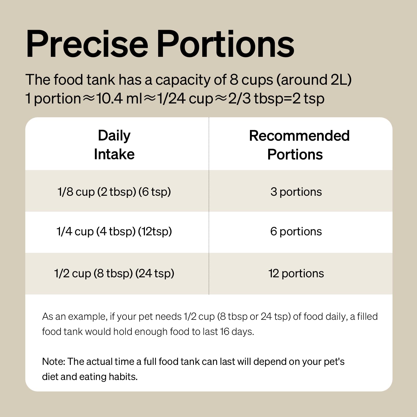 • Easy Portion Control: Dispense from 1 to 10 portions per meal, allowing you to customize feeding according to your cat’s specific dietary needs.
