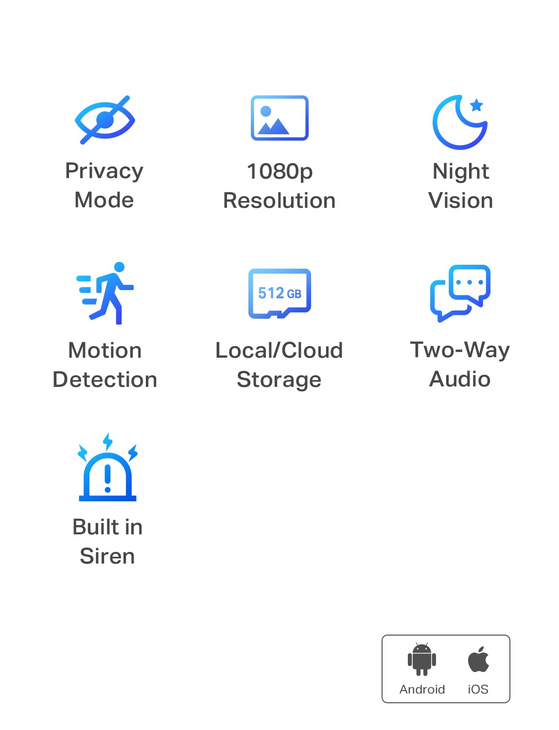 • Two-Way Audio: Communicate seamlessly with family or pets through built-in microphone and speaker.