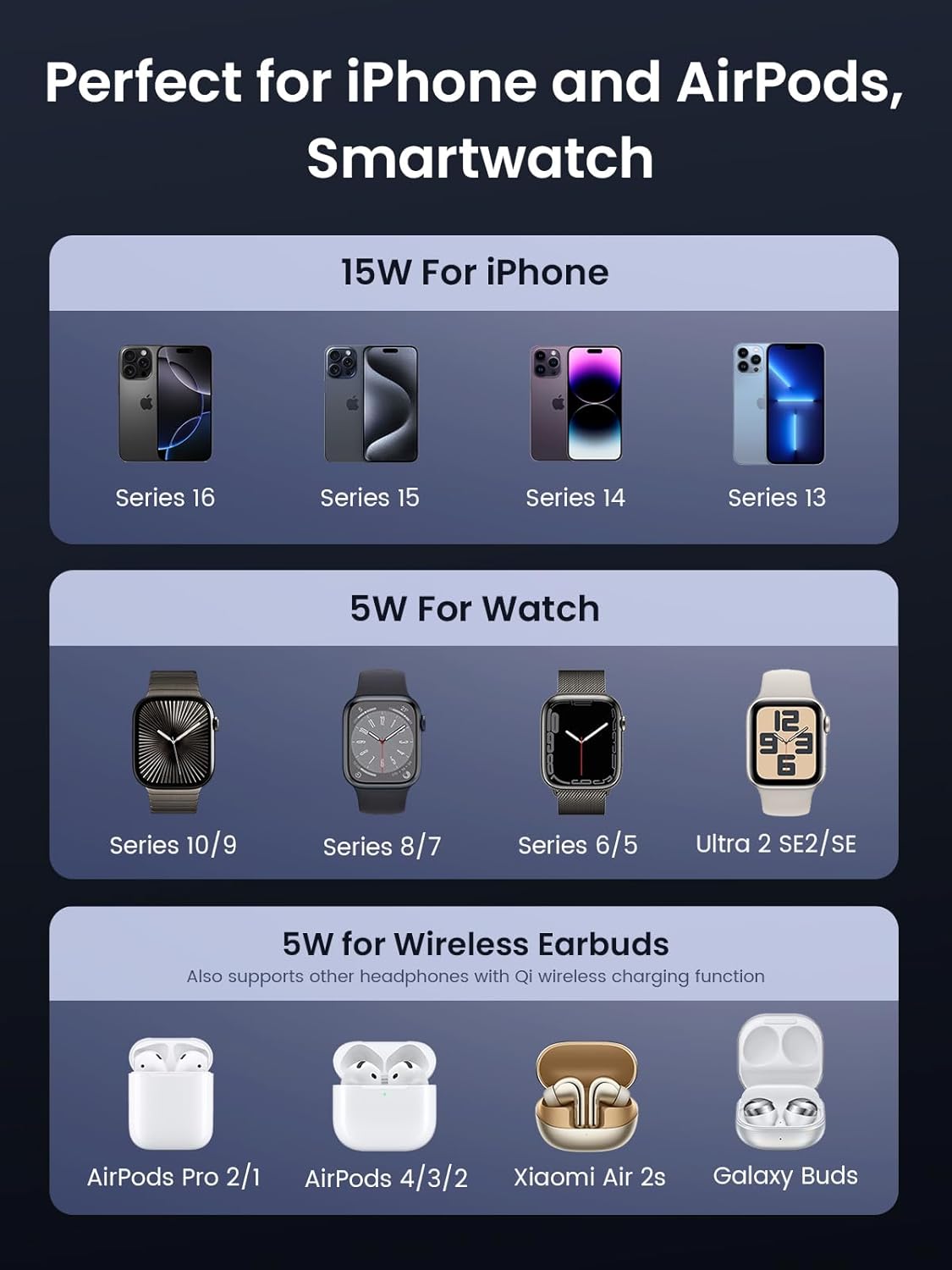 - 1x UGREEN MagFlow 3-in-1 Wireless Charger Station