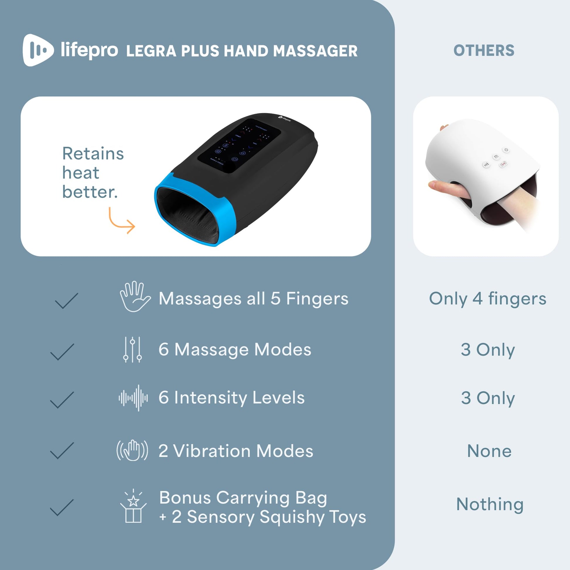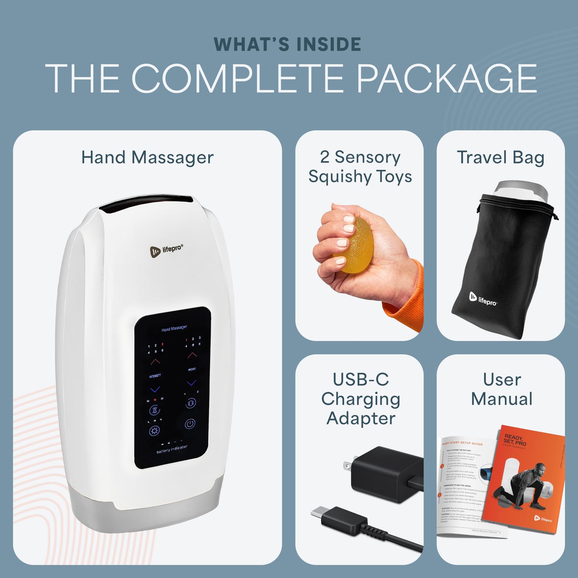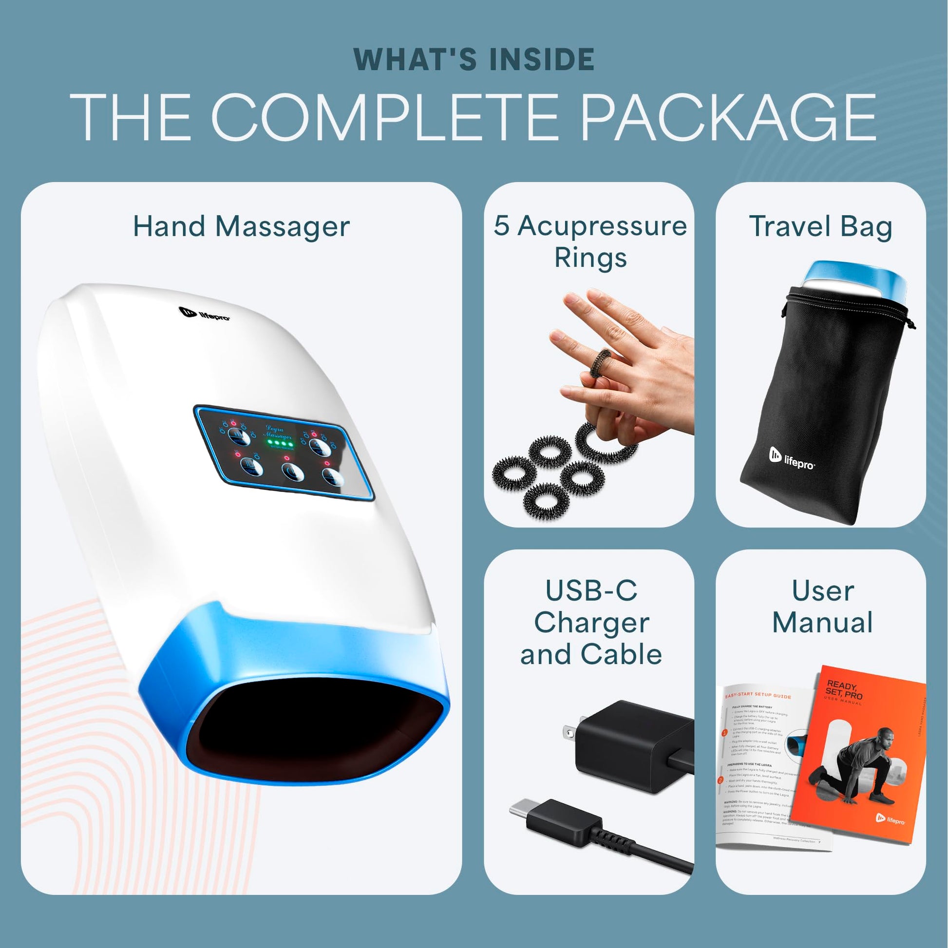 - 1x लाइफप्रो लेग्रा हैंड मसाजर