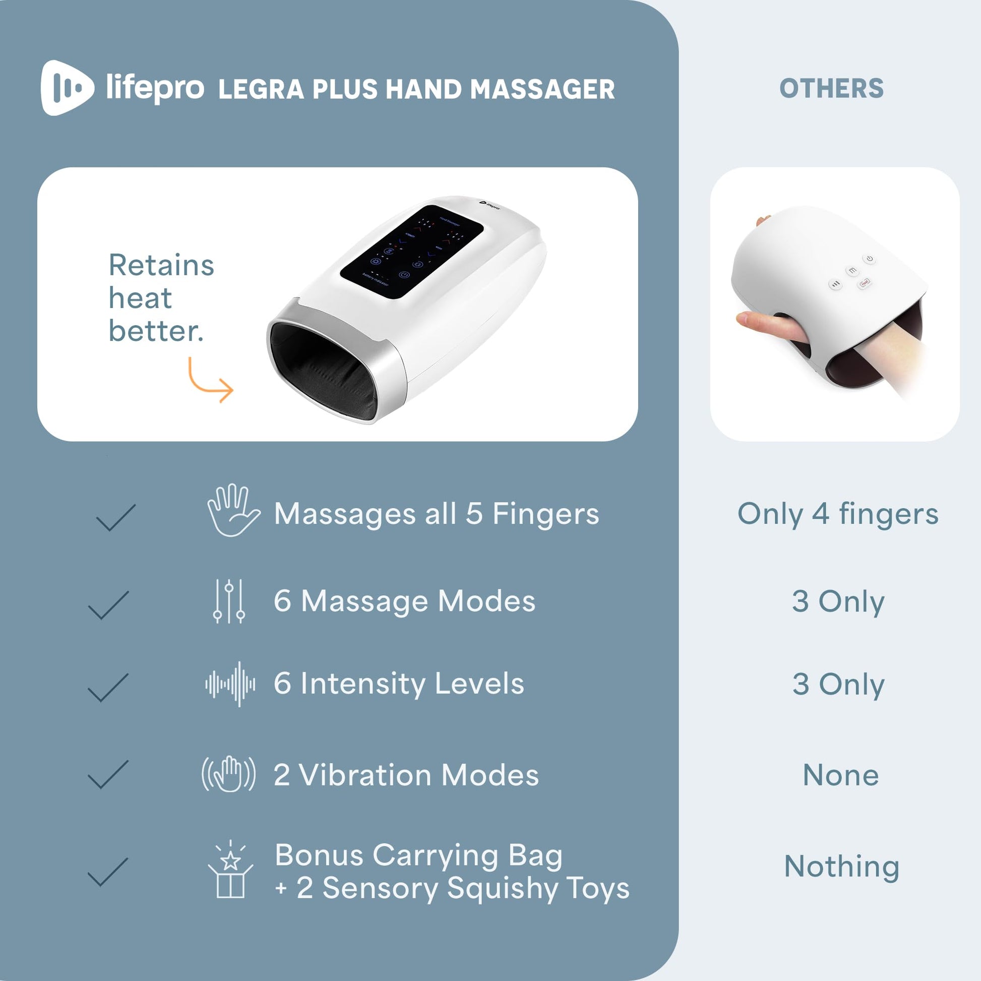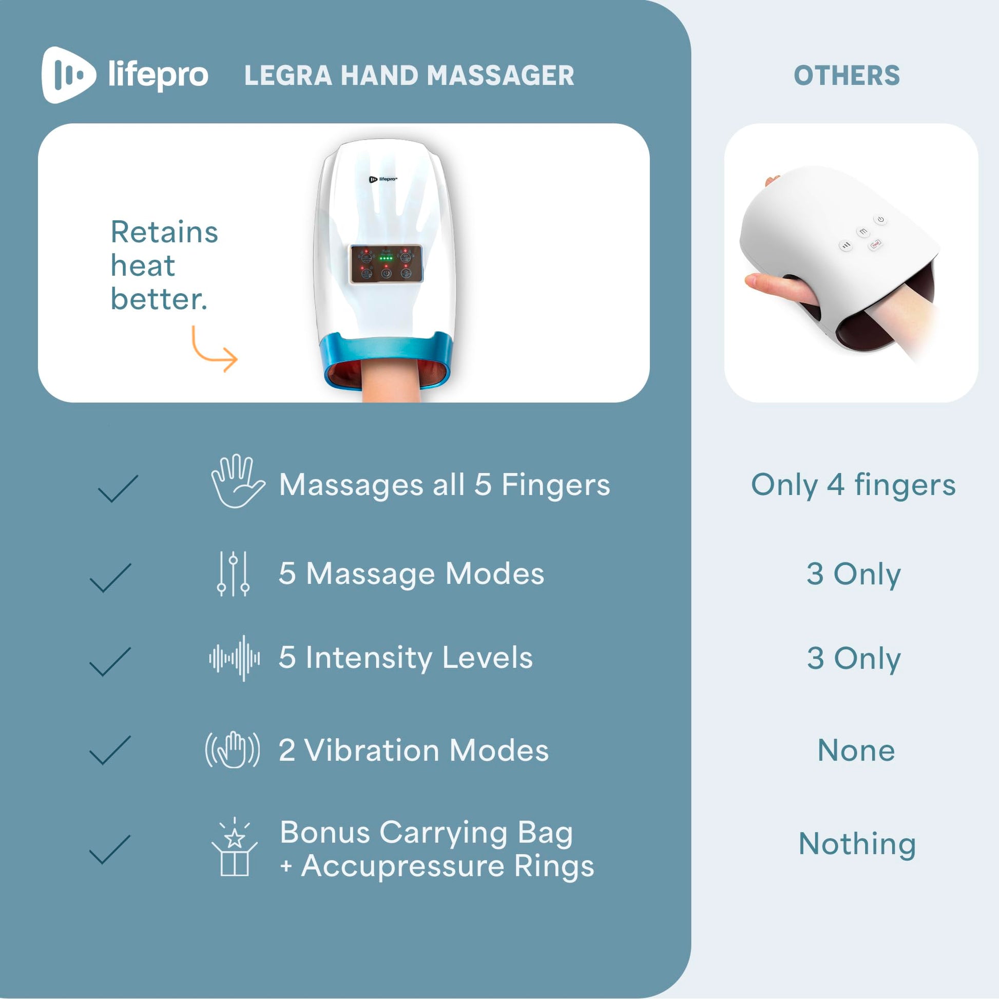 लाइफप्रो लेग्रा हैंड मसाजर हीट और कम्प्रेशन के साथ