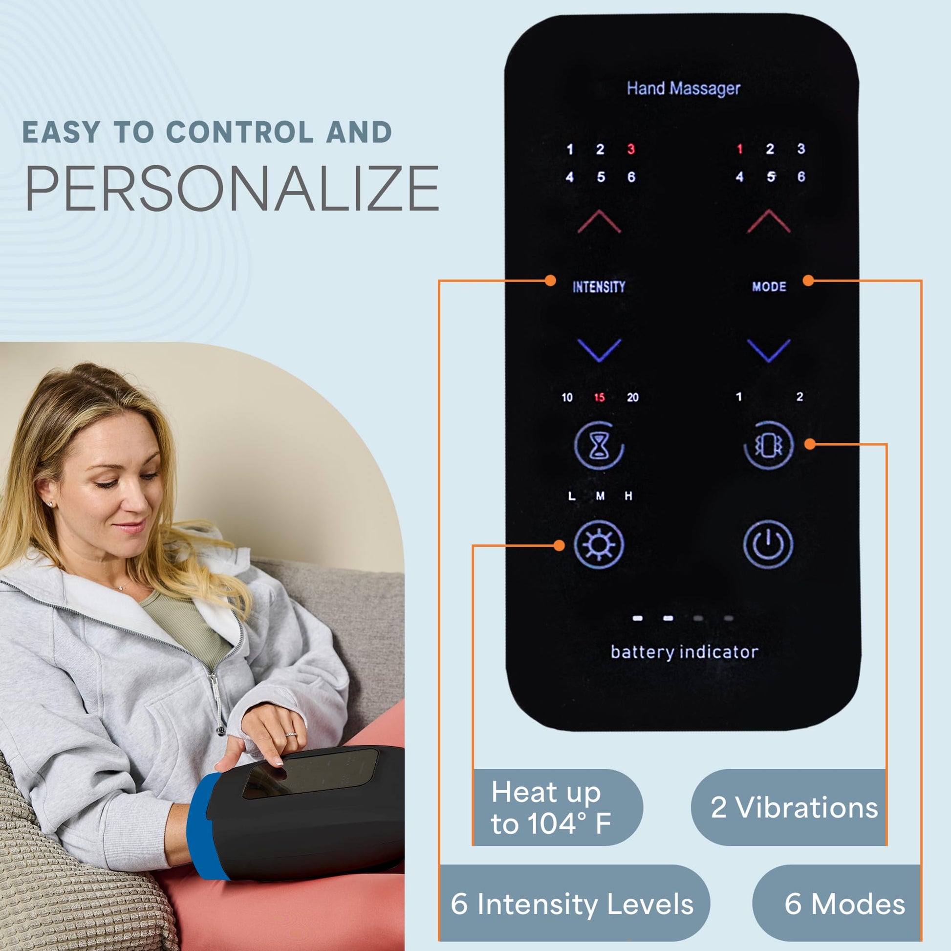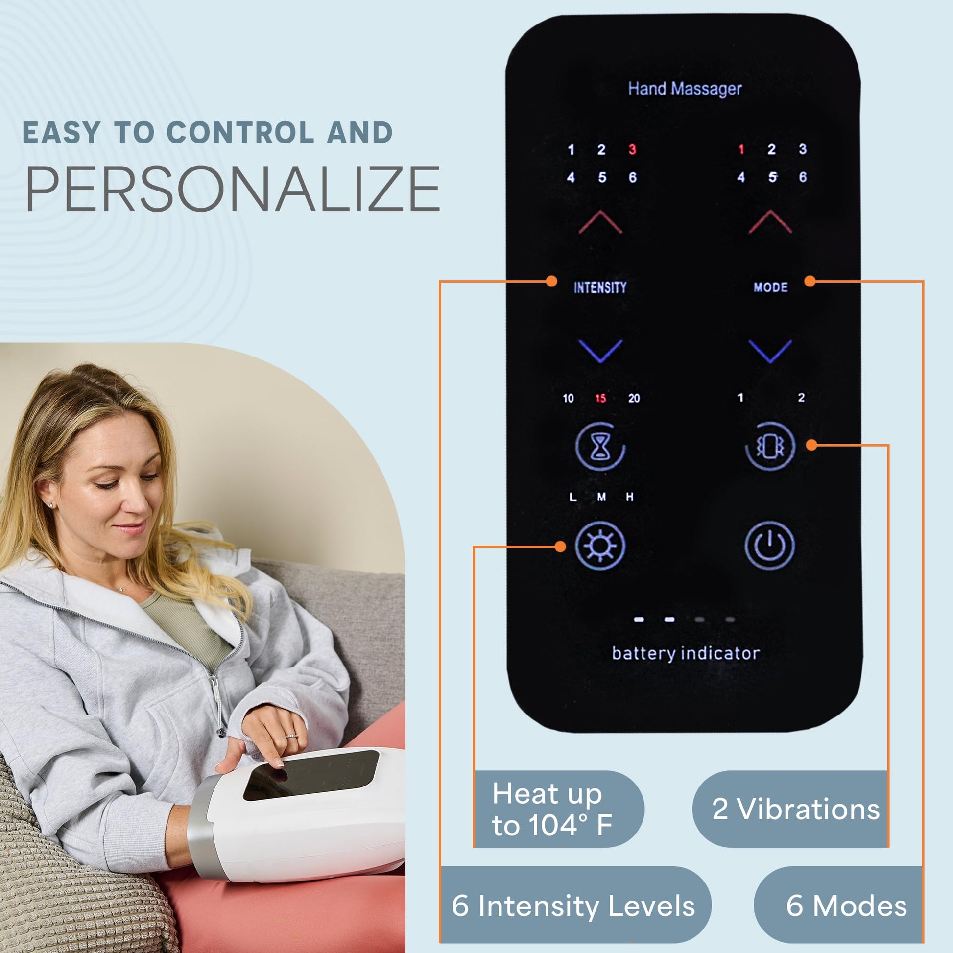- कोमल संपीड़न: समायोज्य संपीड़न सुविधा एक पेशेवर मालिश की नकल करती है, प्रभावी रूप से तनाव से राहत देती है और रक्त प्रवाह को बढ़ाती है।
