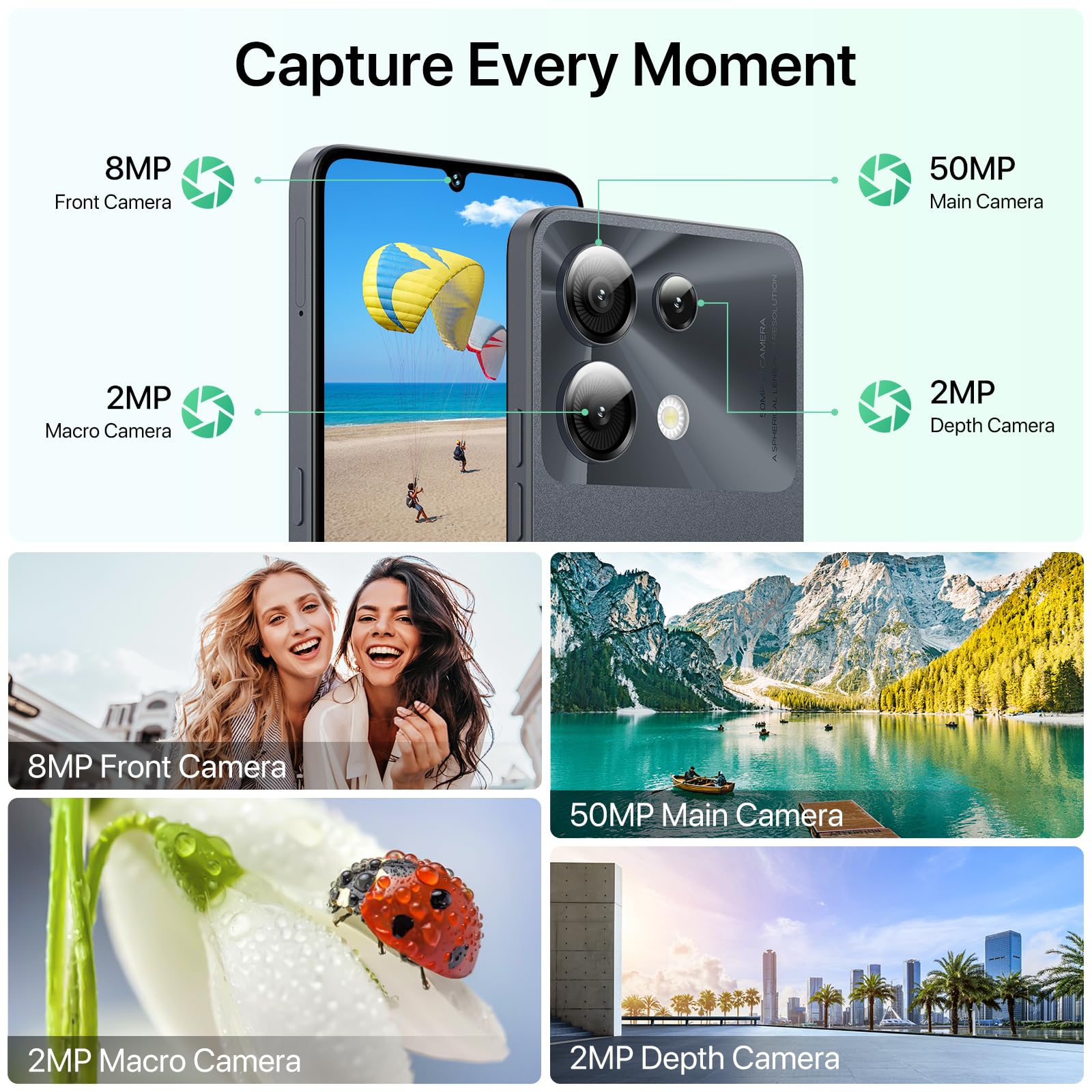 - 50MP Triple Camera System 50MP main rear camera with versatile 8MP front and 2MP macro lenses for detailed shots.