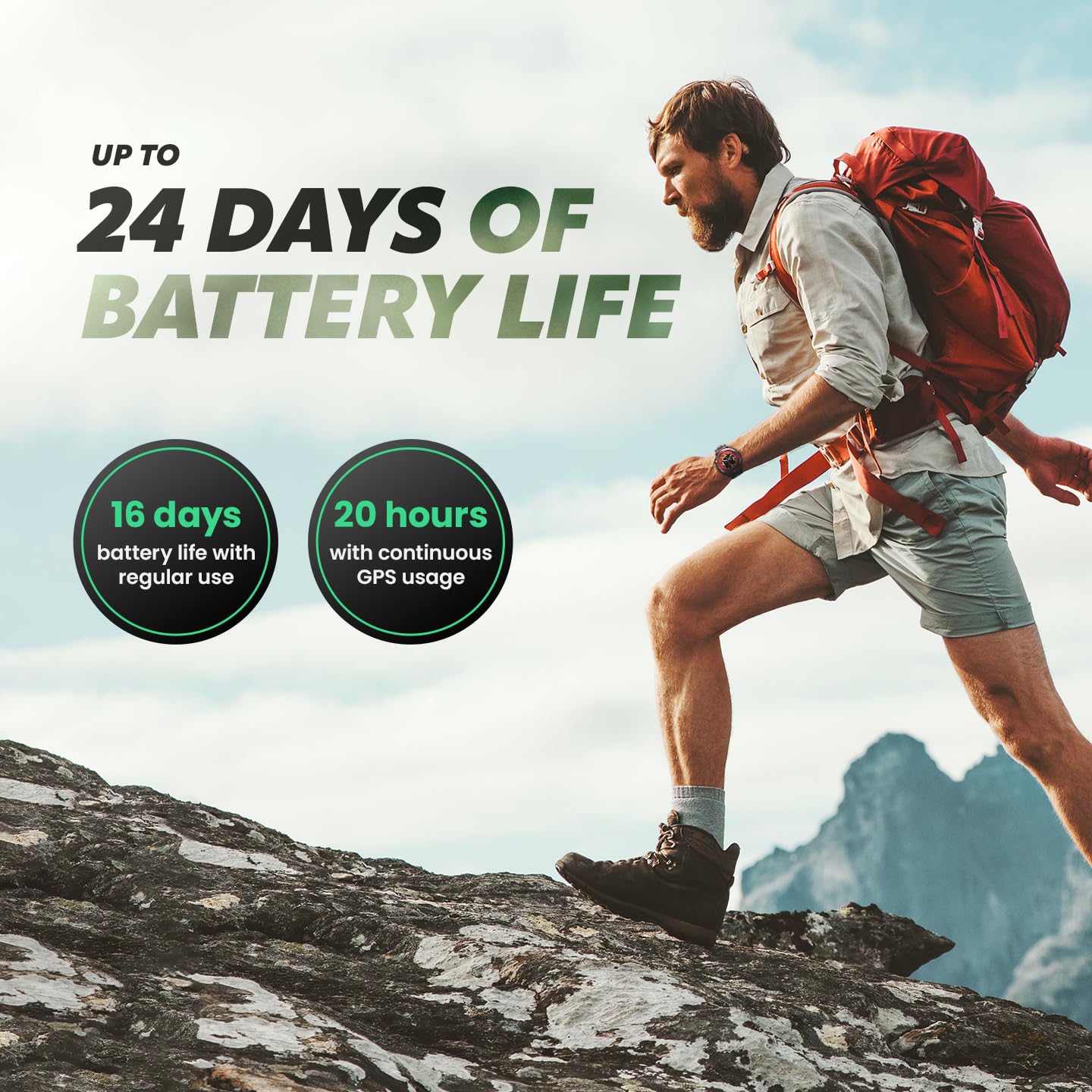• 16-Day Battery Life: Long-lasting battery that reduces charging frequency for extended use on trips and multi-day adventures.