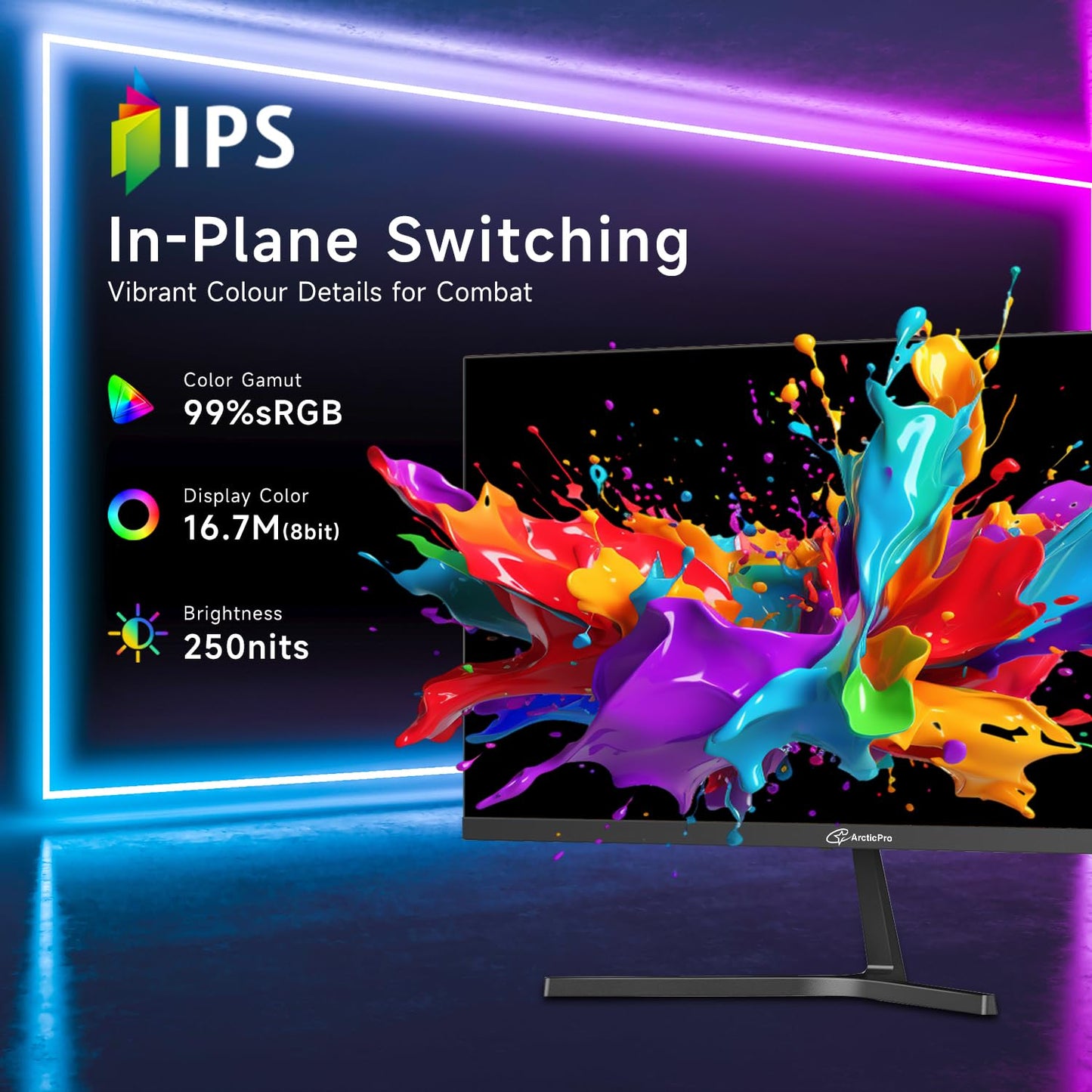 The ArcticPro 22 Inch Full HD Monitor is a slim, frameless display engineered for clear visuals and comfortable long-term viewing. Ideal for home offices, remote work, casual gaming, and multimedia consumption, it pairs a 1920x1080 Full HD panel with a 100Hz refresh rate for fluid motion and crisp detail. Built with eye-care features like Low Blue Mode and anti-blue technology, this monitor reduces visual fatigue while delivering vivid colors and wide viewing angles. Compact, VESA-compatible, and easy to set up, it’s a reliable choice for users who want professional performance without extras like a built-in camera.