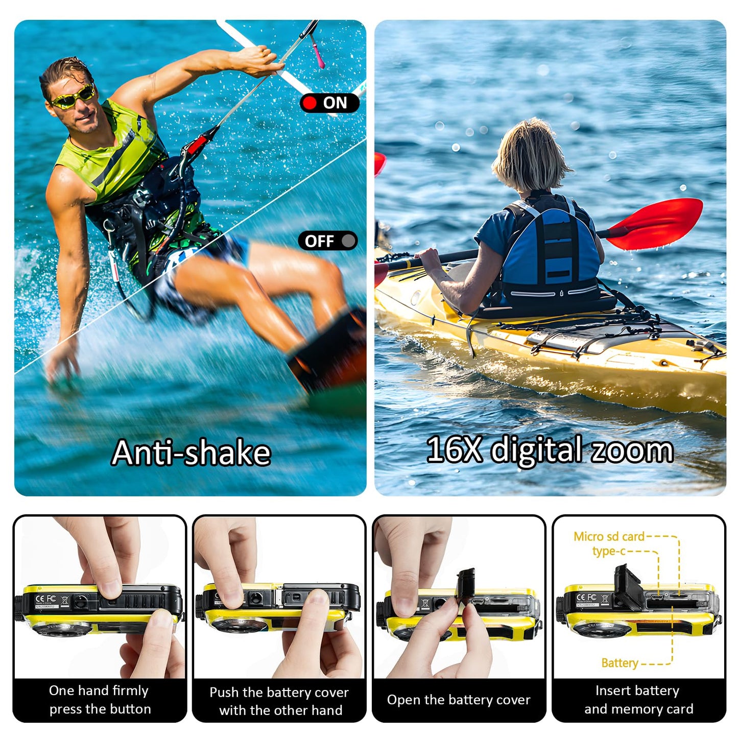 - Stability Features: Integrated anti-shake technology ensures smooth video capture even in turbulent waters.