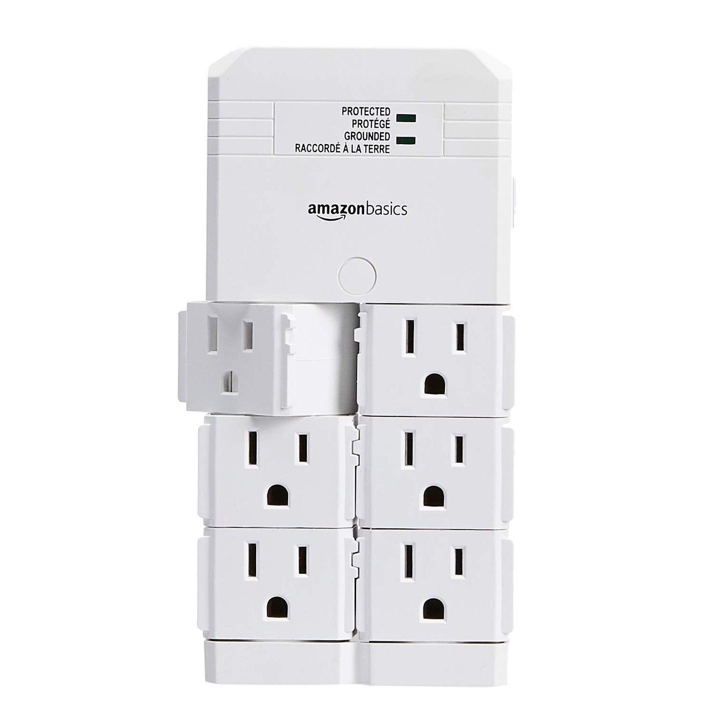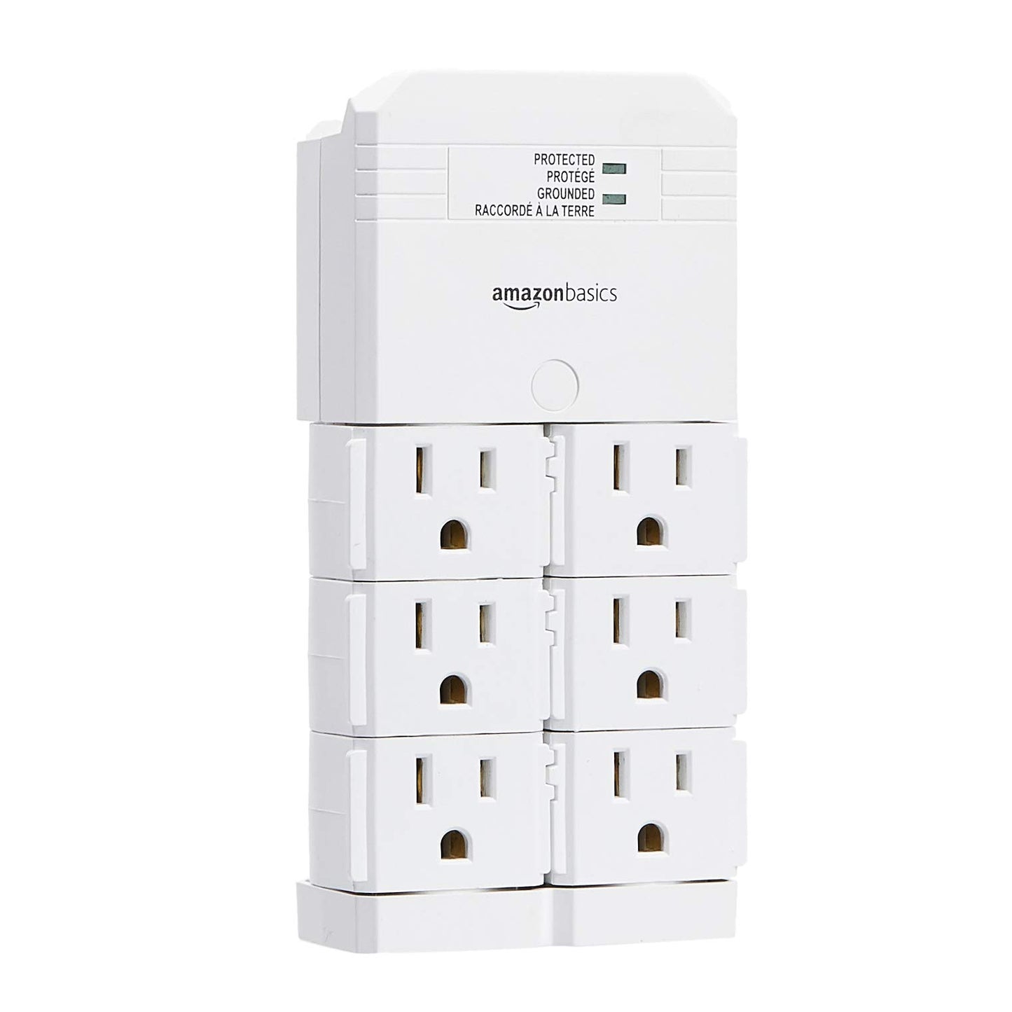 The Amazon Basics 6-Outlet Surge Protector Wall Mount Extender is a compact, wall-mounted power solution designed to expand a single outlet into six rotatable, grounded outlets. Ideal for home offices, entertainment centers, and bedside setups, it keeps multiple devices organized while providing surge protection. Built for everyday electronics, it helps safeguard equipment from power spikes and offers flexible outlet orientation to accommodate bulky adapters. Its simple, reliable design makes it a practical upgrade for anyone needing more accessible, protected power from a single wall outlet.