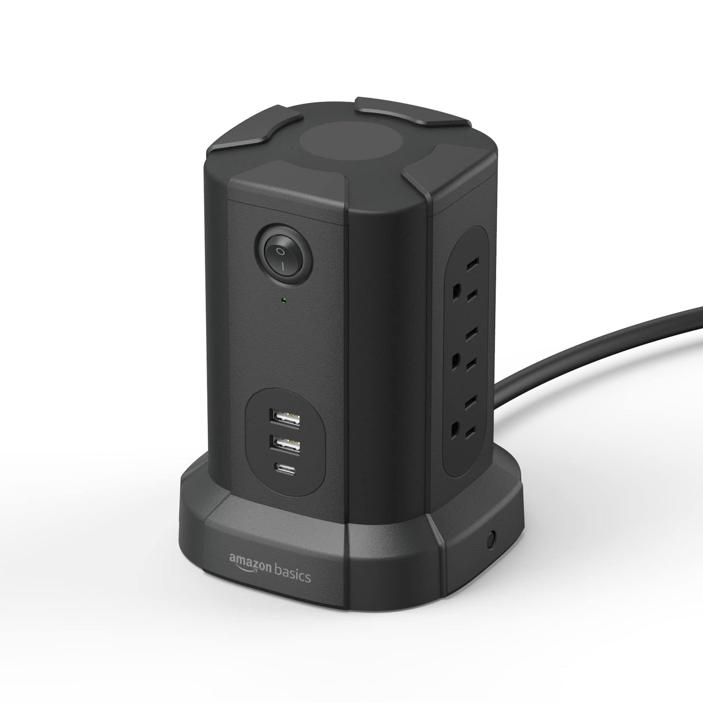 Amazon Basics Power Strip Tower Surge Protector USB Ports