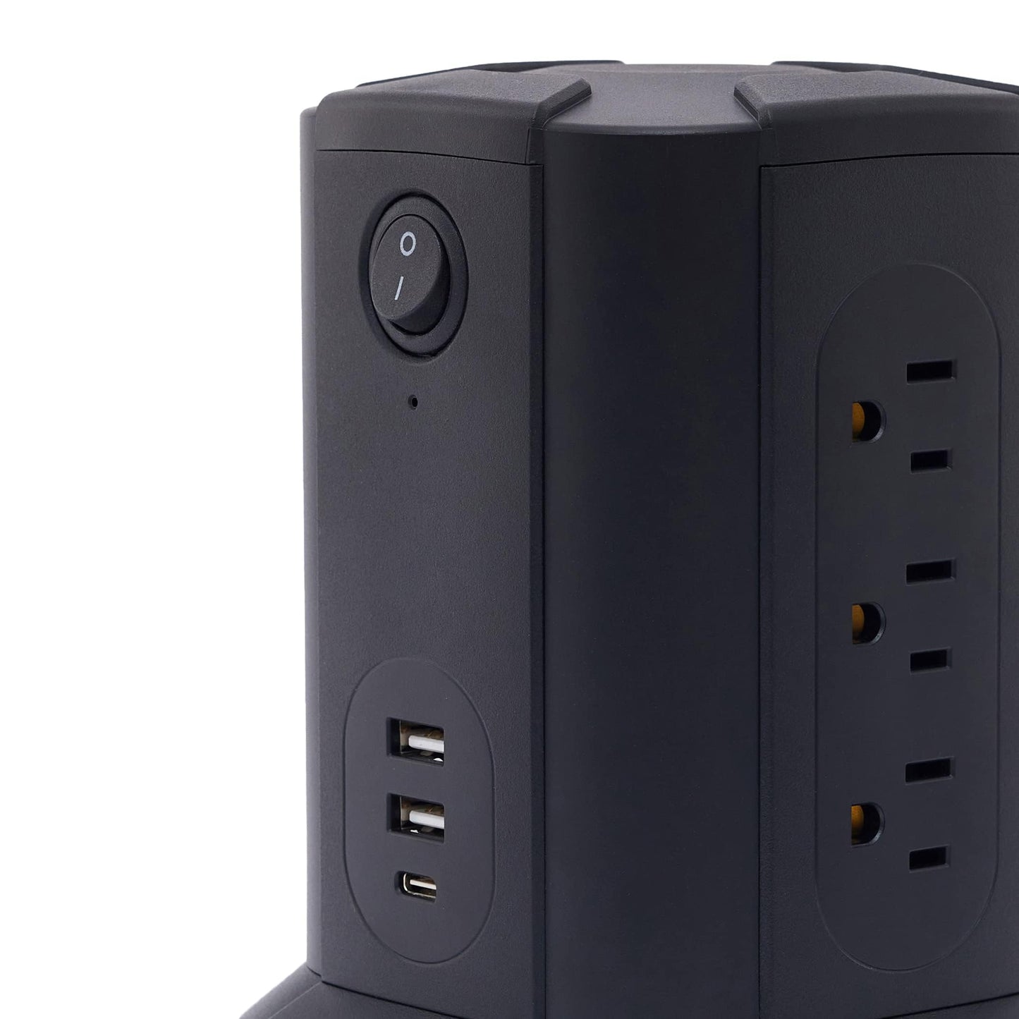 • Space-saving vertical design: Tower format minimizes desk or floor footprint while keeping outlets accessible on multiple sides.