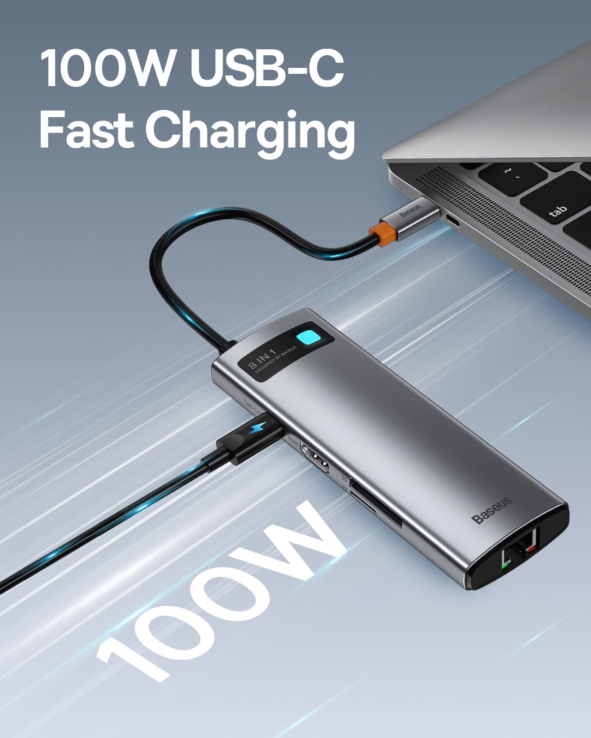 • 100W Power Delivery — PD passthrough charging keeps your laptop powered while the hub handles multiple peripherals and displays.