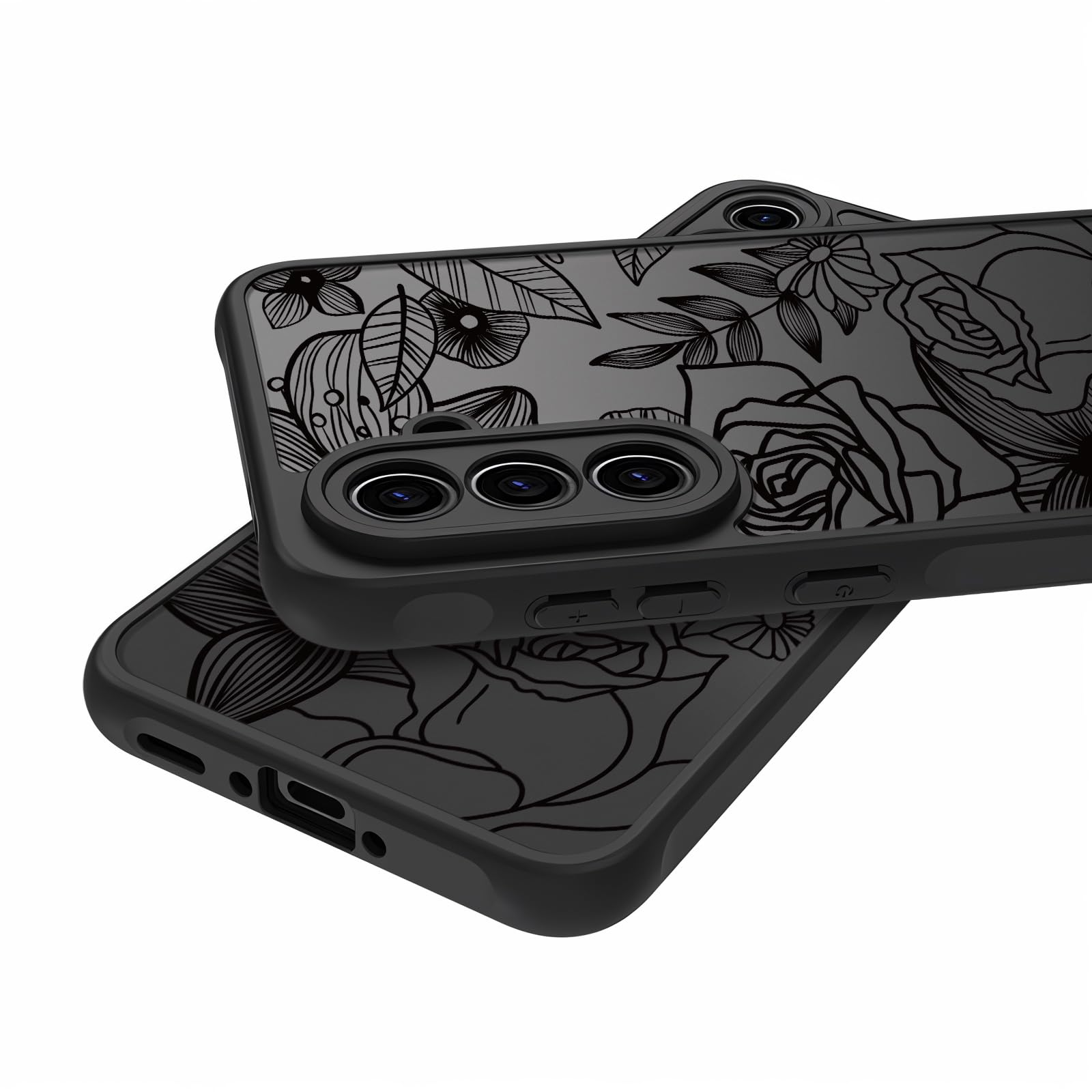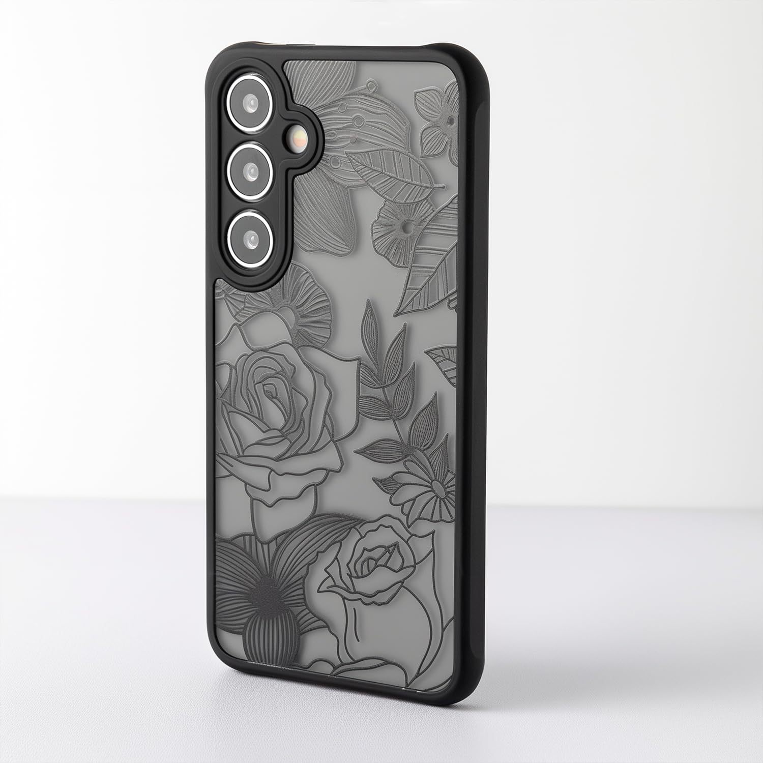Samsung Galaxy A16 5G Case Black Line Art Floral Rose Pattern Heavy Duty PC