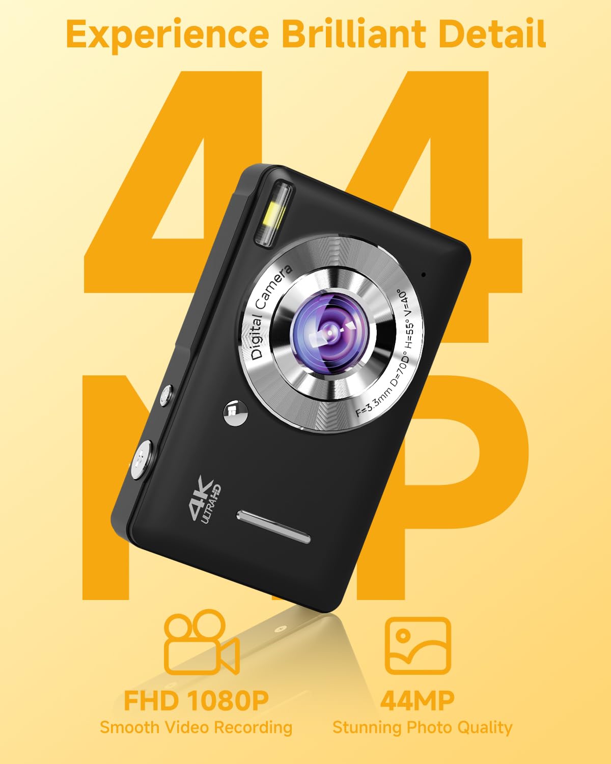 44MP Compact Digital Camera with 16X Zoom for Kids