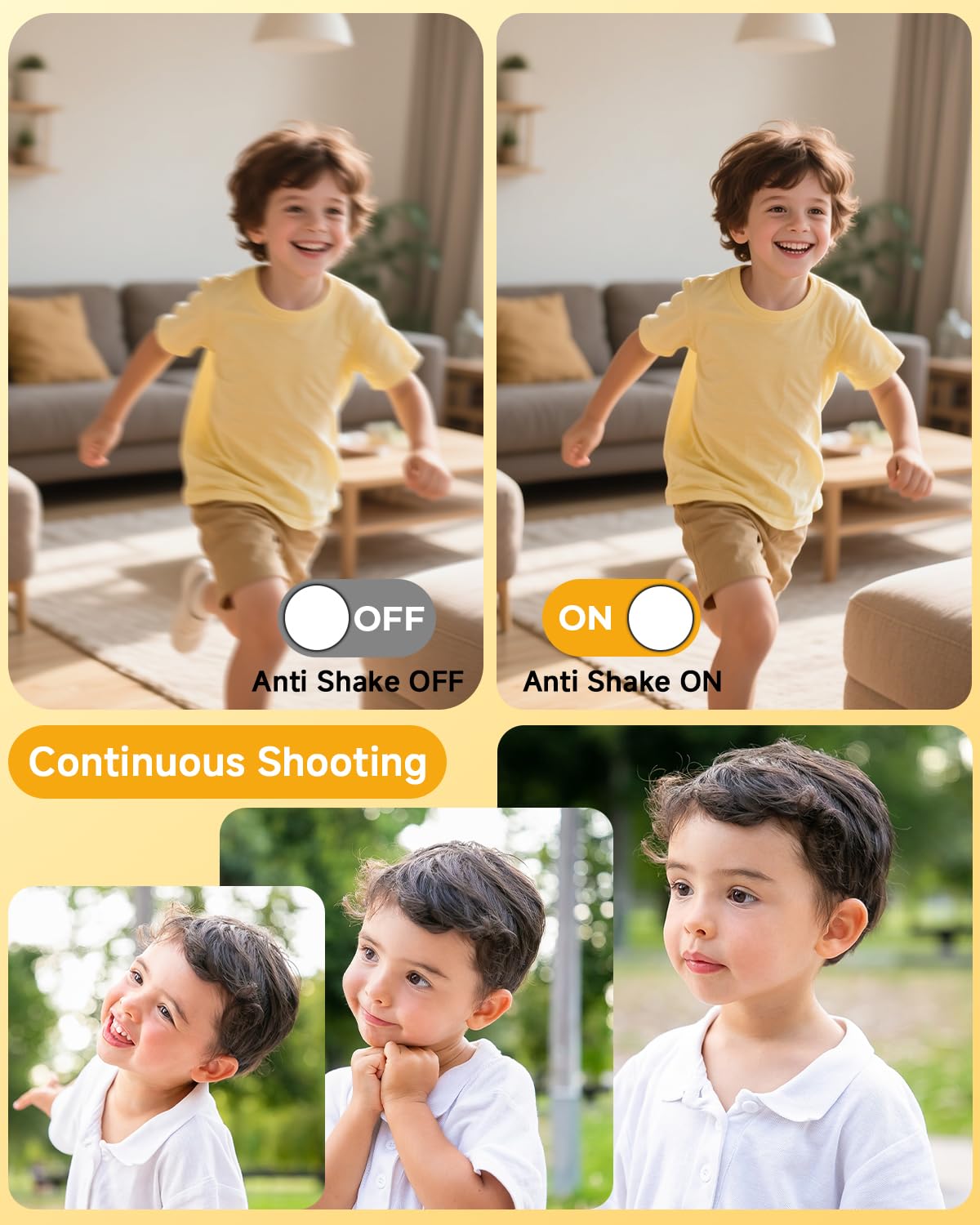 • Video Recording: Allows kids to capture moments in motion with high-quality video capabilities.