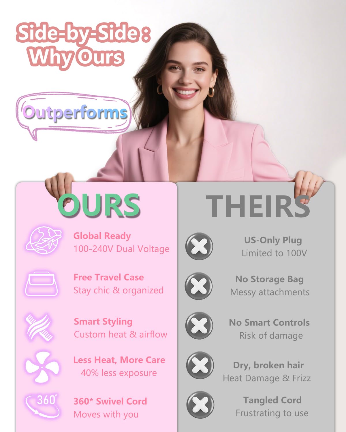 Dual Voltage Hair Dryer Brush for Travel Styling