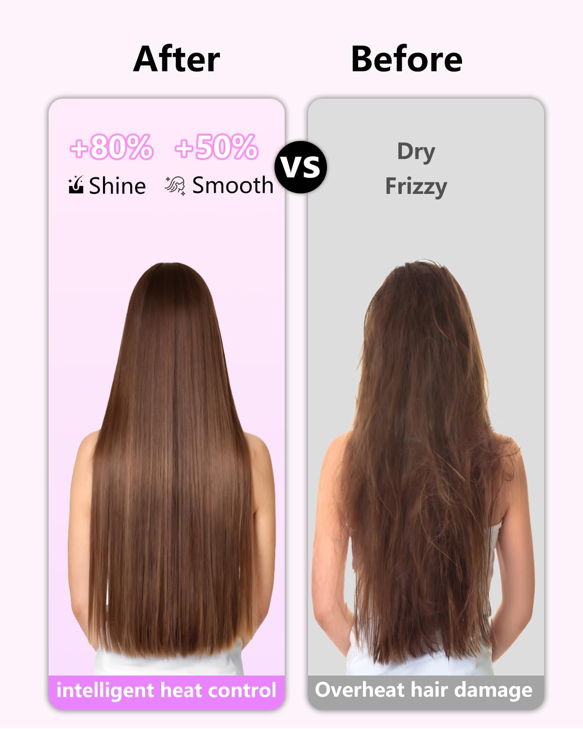 Anti-Static Technology: Helps reduce frizz and static, leaving your hair smooth and shiny.