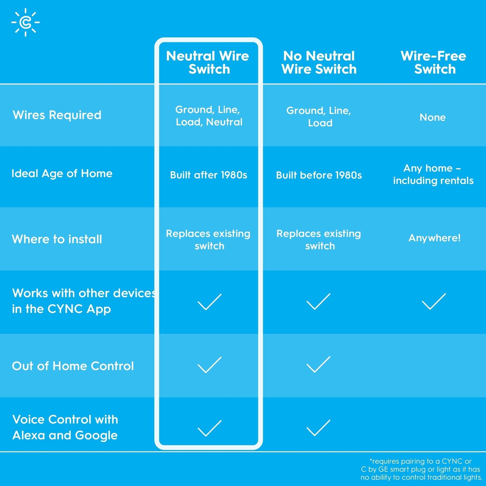 GE CYNC Smart Light Switch No Neutral Wire Required