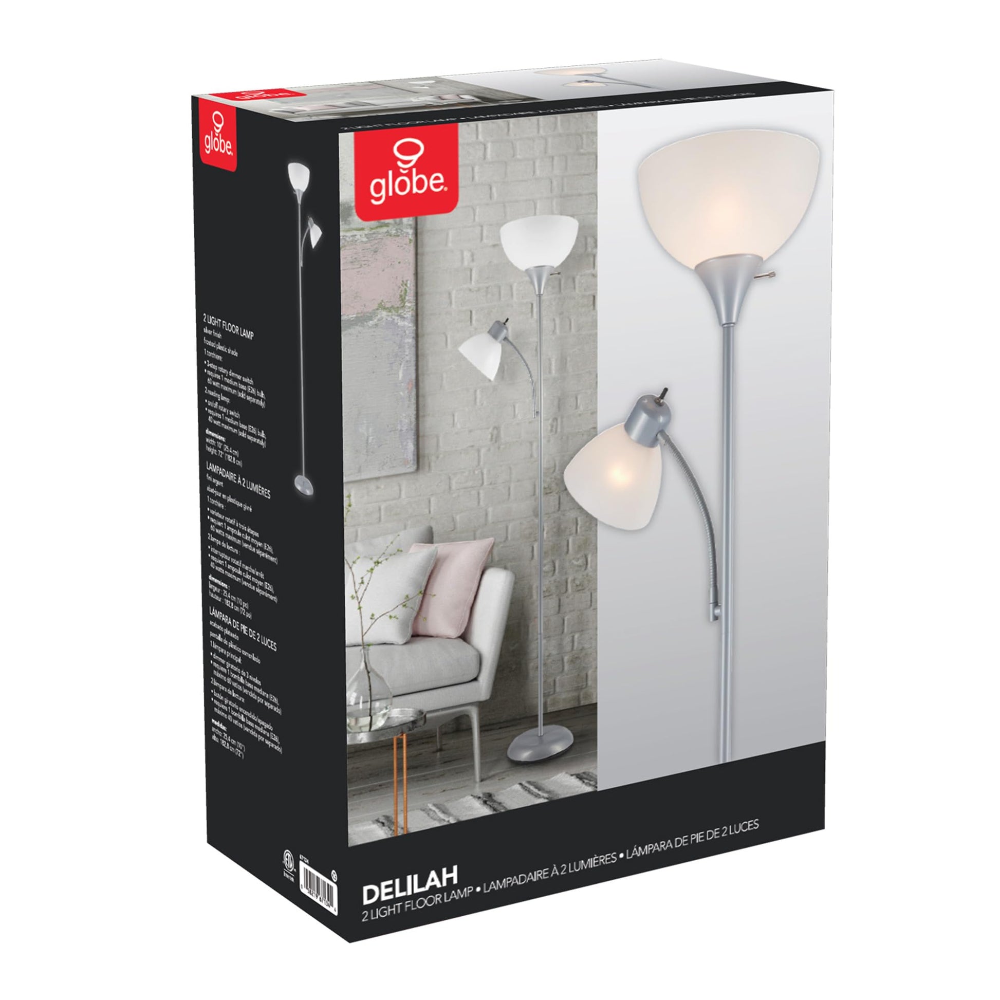 Illuminate your home with the Globe Electric Delilah Floor Lamp with Adjustable Reading Light, a perfect blend of style and function. This exquisite lamp is designed for anyone looking to brighten their living space, reading nook, or office area. Standing at 72 inches tall, it effortlessly enhances both small and medium-sized environments, making it an essential addition to your decor. With its chic design and adjustable reading light, this floor lamp not only provides ample illumination but also adds a touch of elegance to your home.