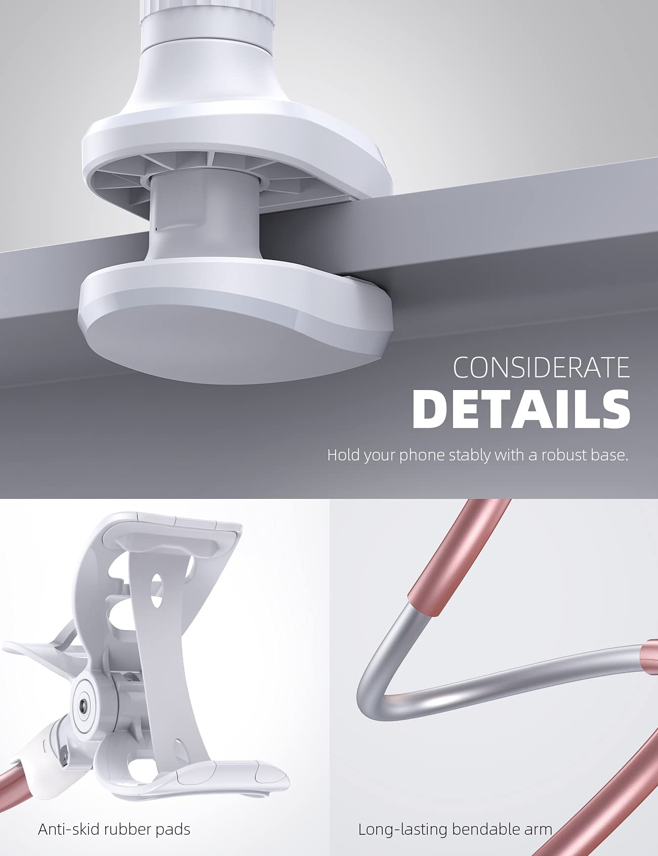 • Flexible Gooseneck — Easily bend and lock into the perfect angle for reading, watching, or video calls without tools.