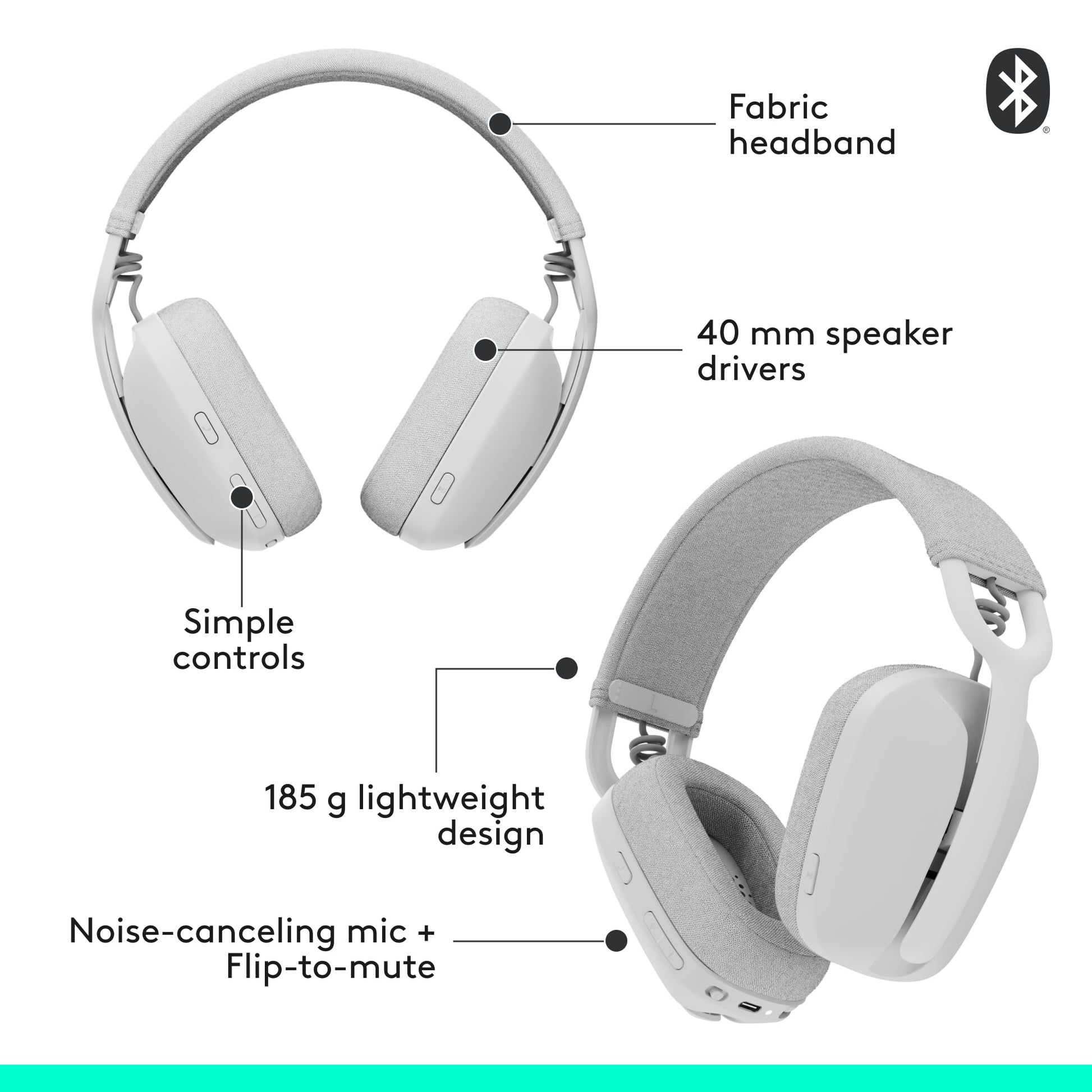 Logitech Zone Vibe 100 Wireless Headphones with Noise Canceling Microphone