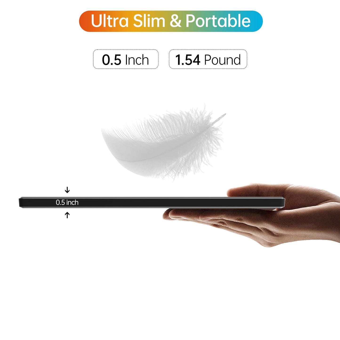 • Portable slim design: Lightweight, ultra-slim profile fits easily into backpacks and luggage for travel.