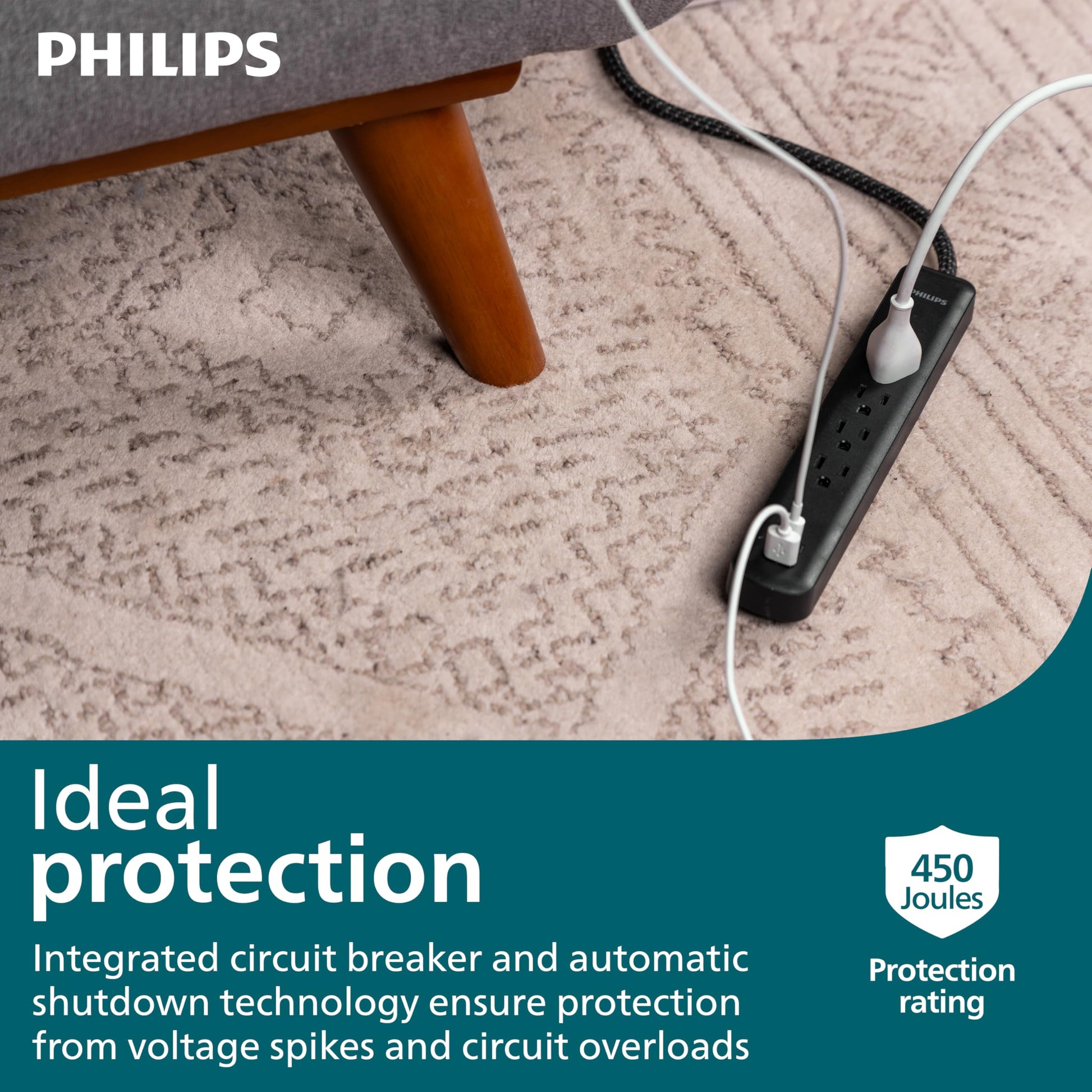 Philips Power Strip Surge Protector With Braided Cord
