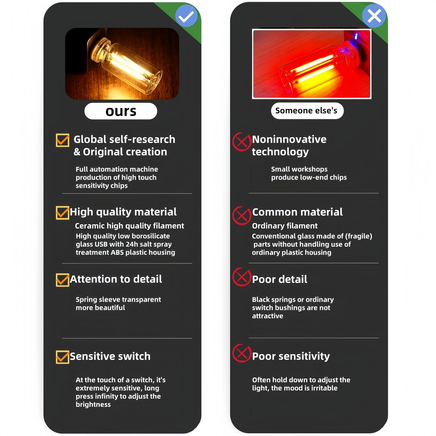 Bring nostalgic '90s USA flair to any space with the Retro Car Lamp Touch USB LED Night Light Ambient Decor Desk. This compact, glass-bodied LED combines a vintage bulb silhouette with modern touch controls and multi-color lighting, making it ideal for drivers, campers, dorm residents, and anyone who wants soft, customizable ambience. USB-powered and featherlight, it’s designed for easy portability across cars, desks, tents, and bedside tables. Reliable build, dimmable color options, and intuitive touch operation deliver a premium, user-friendly lighting experience.