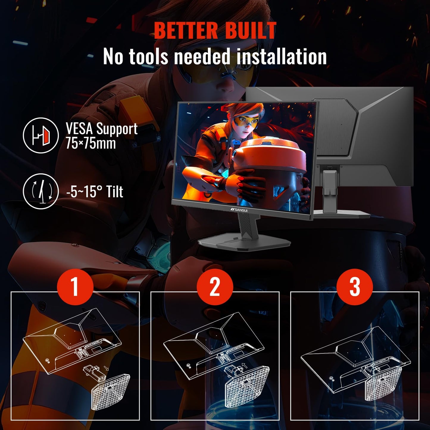 The Sansui 24 Inch Eye Care Monitor is a versatile 24" FHD display designed for home, office and casual gaming. It delivers crisp 1920×1080 resolution, adaptive FreeSync performance and a comfortable eye-care experience that reduces strain during long sessions. With HDMI and VGA inputs, a VESA-compatible mount and an ergonomic tilt stand, it’s ideal for remote workers, students and budget-conscious gamers seeking reliable everyday performance. Durable build quality, a matte screen surface and a compact footprint make it a trusted addition to any desktop setup.