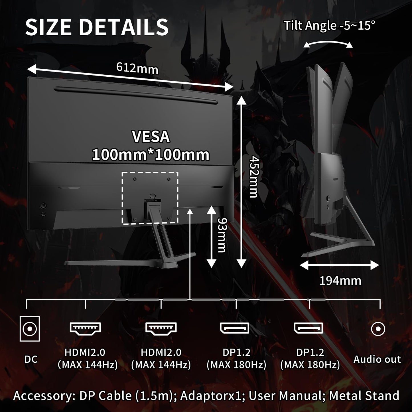 • VESA Compatible: 75×75mm mount support allows wall or arm mounting to save desk space.