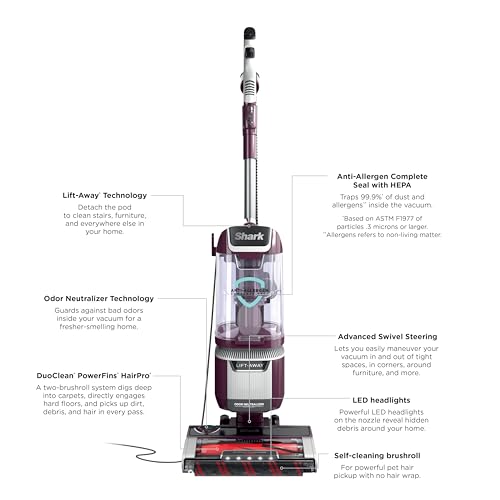 The Shark Navigator Lift-Away Vacuum with Self-Cleaning Brushroll is your ultimate cleaning companion, engineered for efficient and hassle-free home maintenance. Ideal for busy households, this vacuum effortlessly tackles dirt and pet hair while ensuring optimal performance without tangles. With its innovative self-cleaning brushroll feature, you can enjoy a cleaner home without the headache of maintenance. Designed to adapt to your cleaning needs, this vacuum stands out with its powerful suction and multiple functionalities, making it an essential addition to any home.