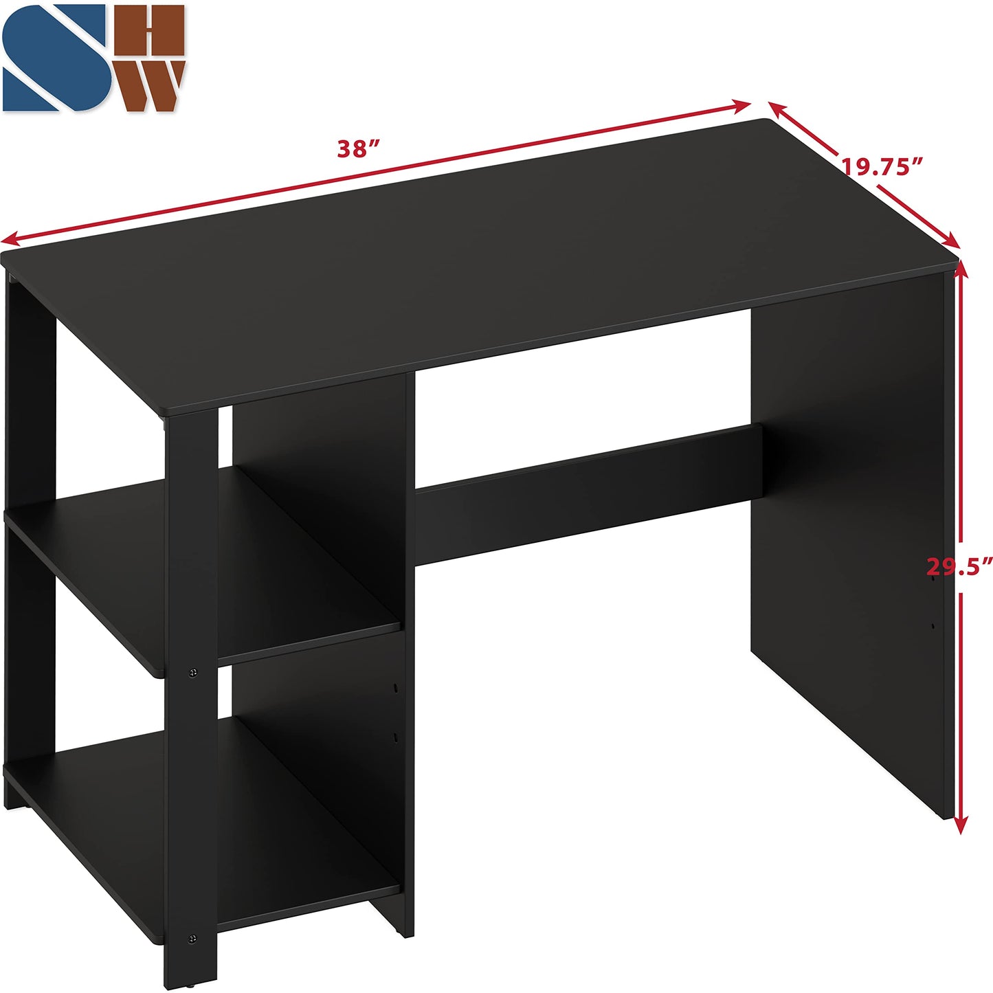 The SHW 38 Inch Black Home Office Desk with Shelves is the ideal workspace solution for professionals, students, and anyone looking to enhance their productivity. With a sleek, modern design, this desk not only provides ample surface area for your computer, documents, and office supplies, but also includes convenient shelving for added organization. Invest in this desk to transform your home office experience, combining style, functionality, and efficiency in one compact unit.