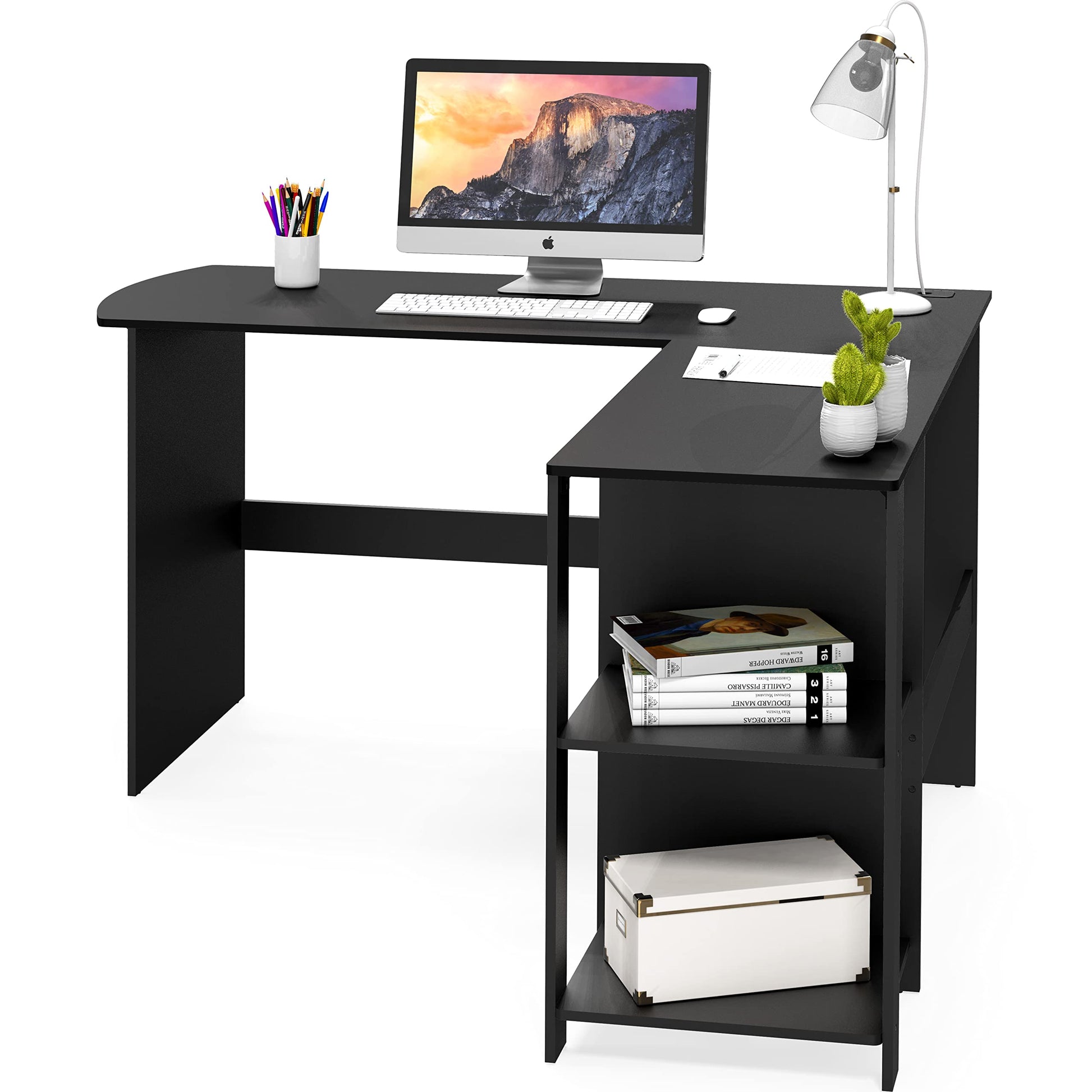 • Spacious Design: The L-shaped configuration offers ample workspace, perfect for multitasking and accommodating larger setups.