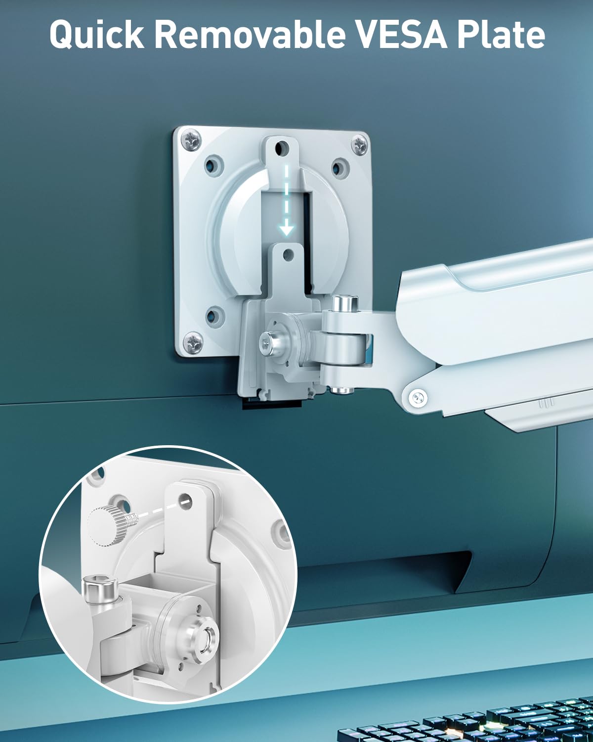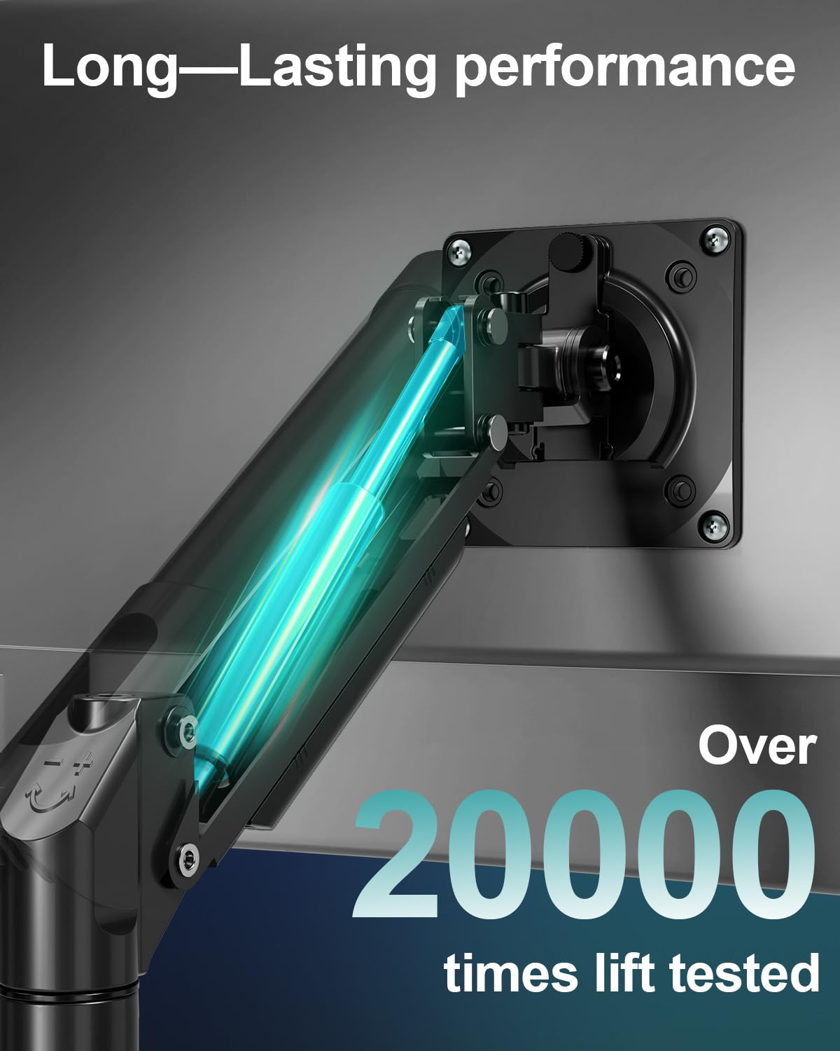 - Gas spring arm: Smooth, stable lift and height adjustment for effortless positioning without tools.