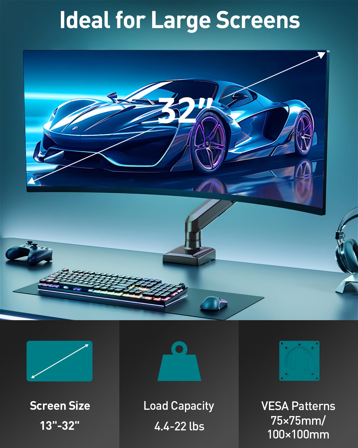 - Load capacity: Supports up to 22 lbs (10 kg), suitable for a wide range of common monitors.