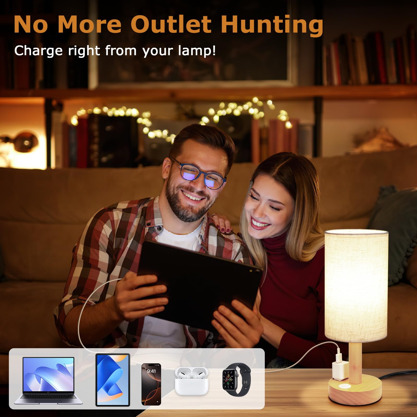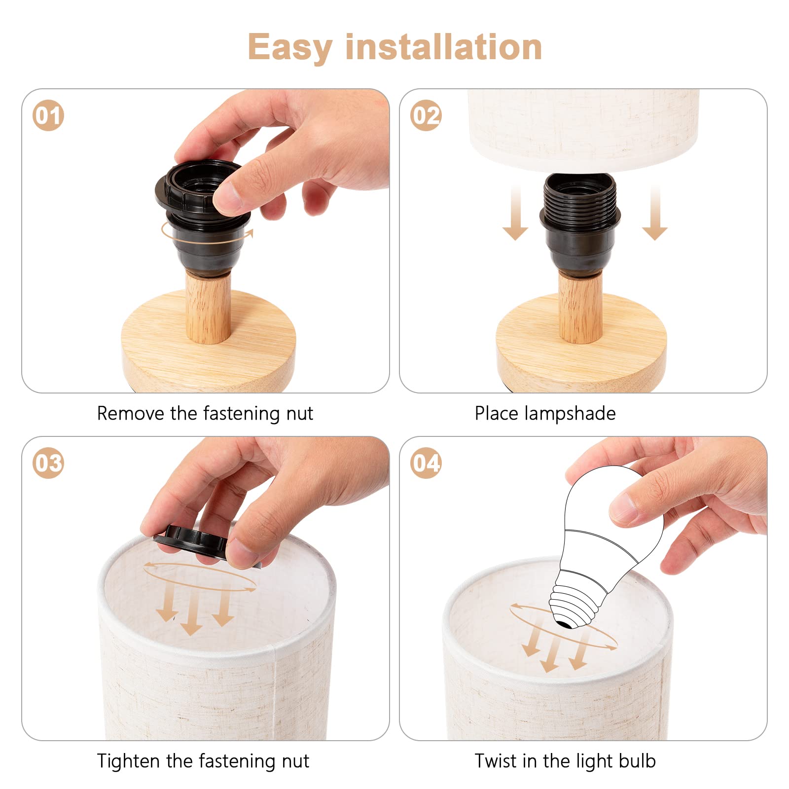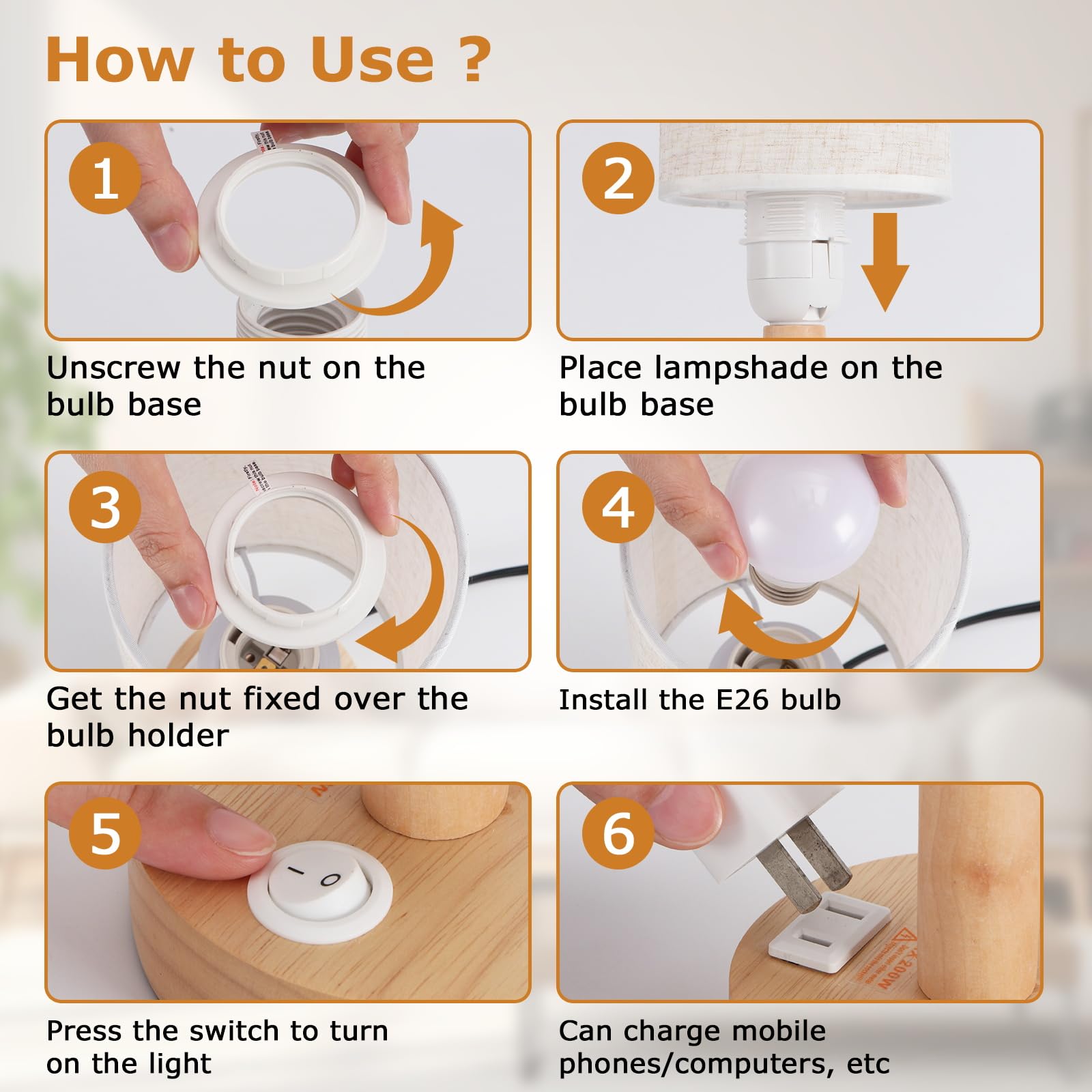 This Small Bedside Lamp with a wooden base and round warm white shade delivers cozy, 2700K illumination ideal for bedrooms, reading nooks, and modern living spaces. Designed for style and function, it combines a natural wood base with a fabric linen shade for a minimalist look that complements contemporary decor. Energy-efficient LEDs provide up to 400 lumens of bright, eye-friendly light while consuming minimal power, making it a smart choice for nightly reading or ambient lighting. UL certification and a simple, user-friendly setup make this lamp a reliable, gift-ready option for homeowners and renters alike.
