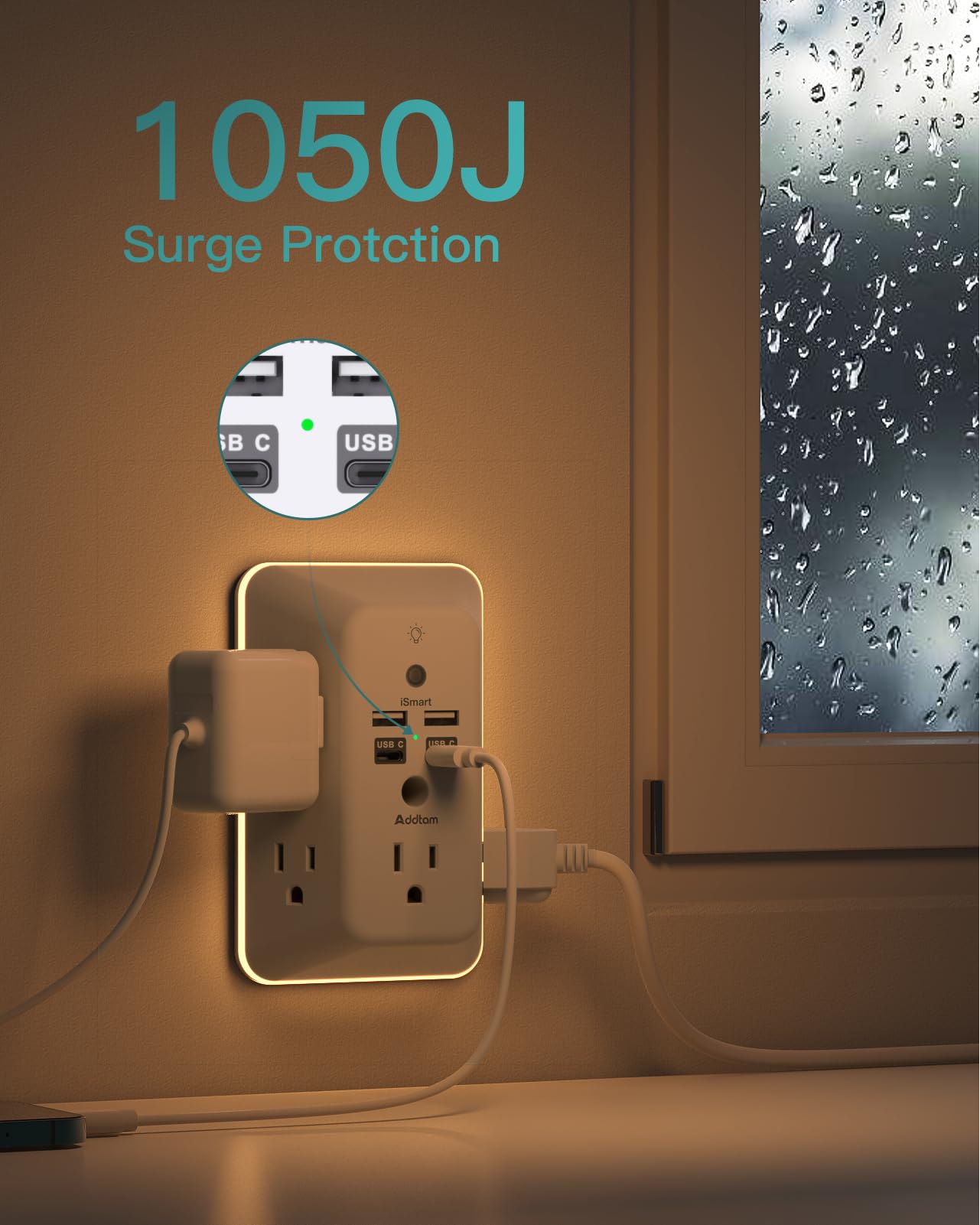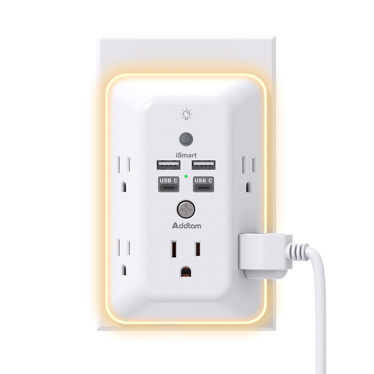 Addtam 9 In 1 USB Wall Outlet With Night Light 5 Outlets
