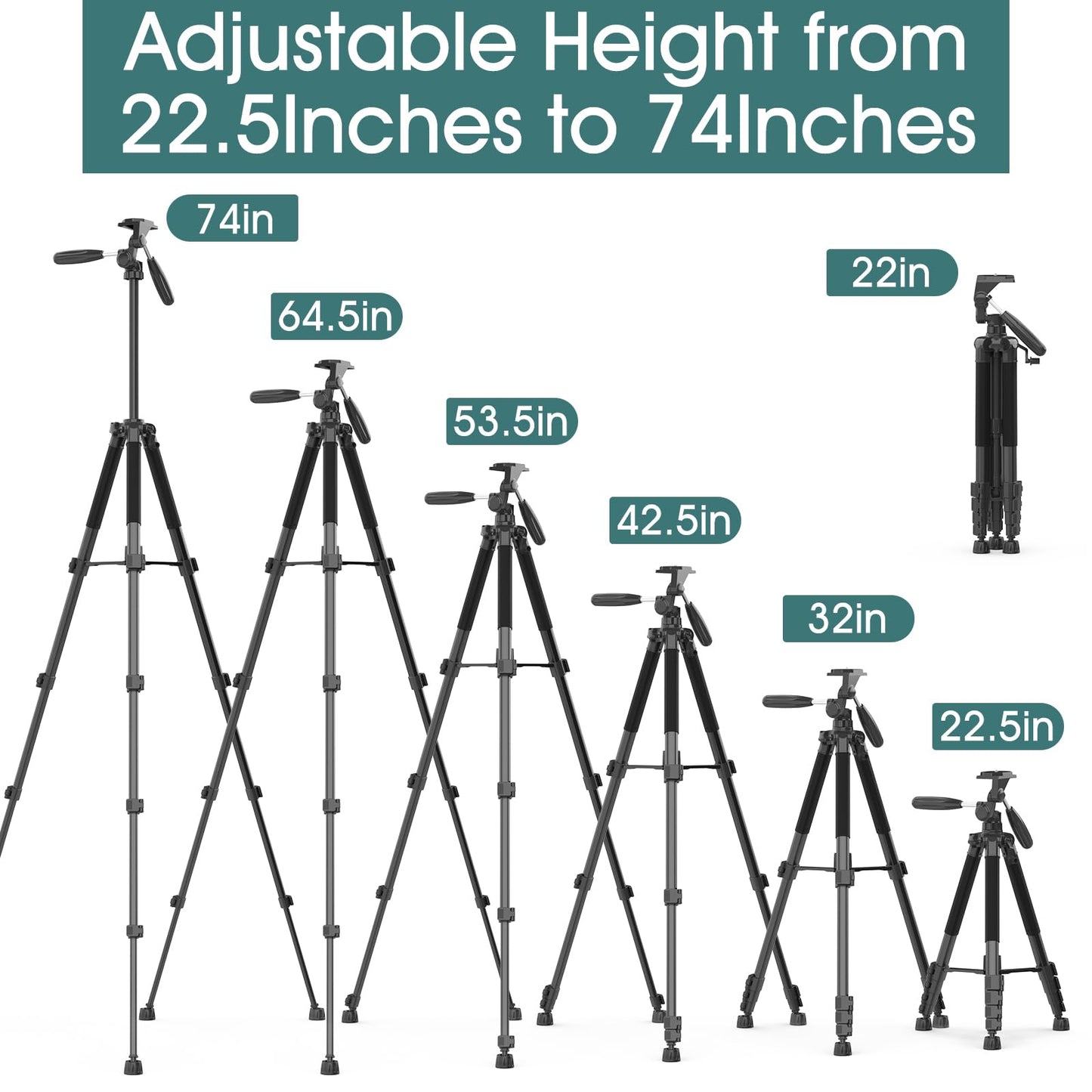 • Adjustable Height: Extends from 26 inches to 74 inches, providing customizable height options for various shooting scenarios.