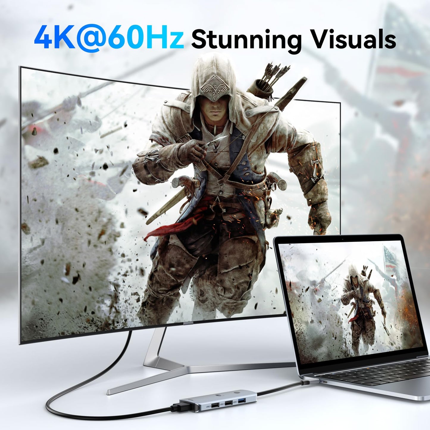 • 6‑in‑1 design: Combines multiple ports into one compact hub to expand your laptop’s connectivity without extra adapters.