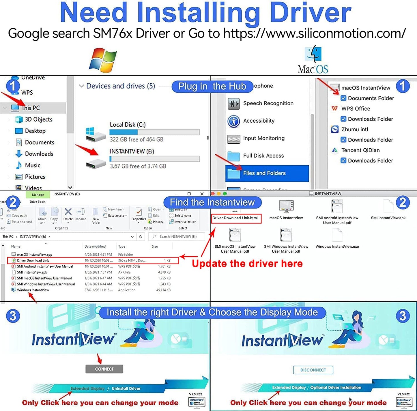 • macOS compatibility: Works with Mac systems in mirror mode (macOS does not support triple-display extension via this hub).