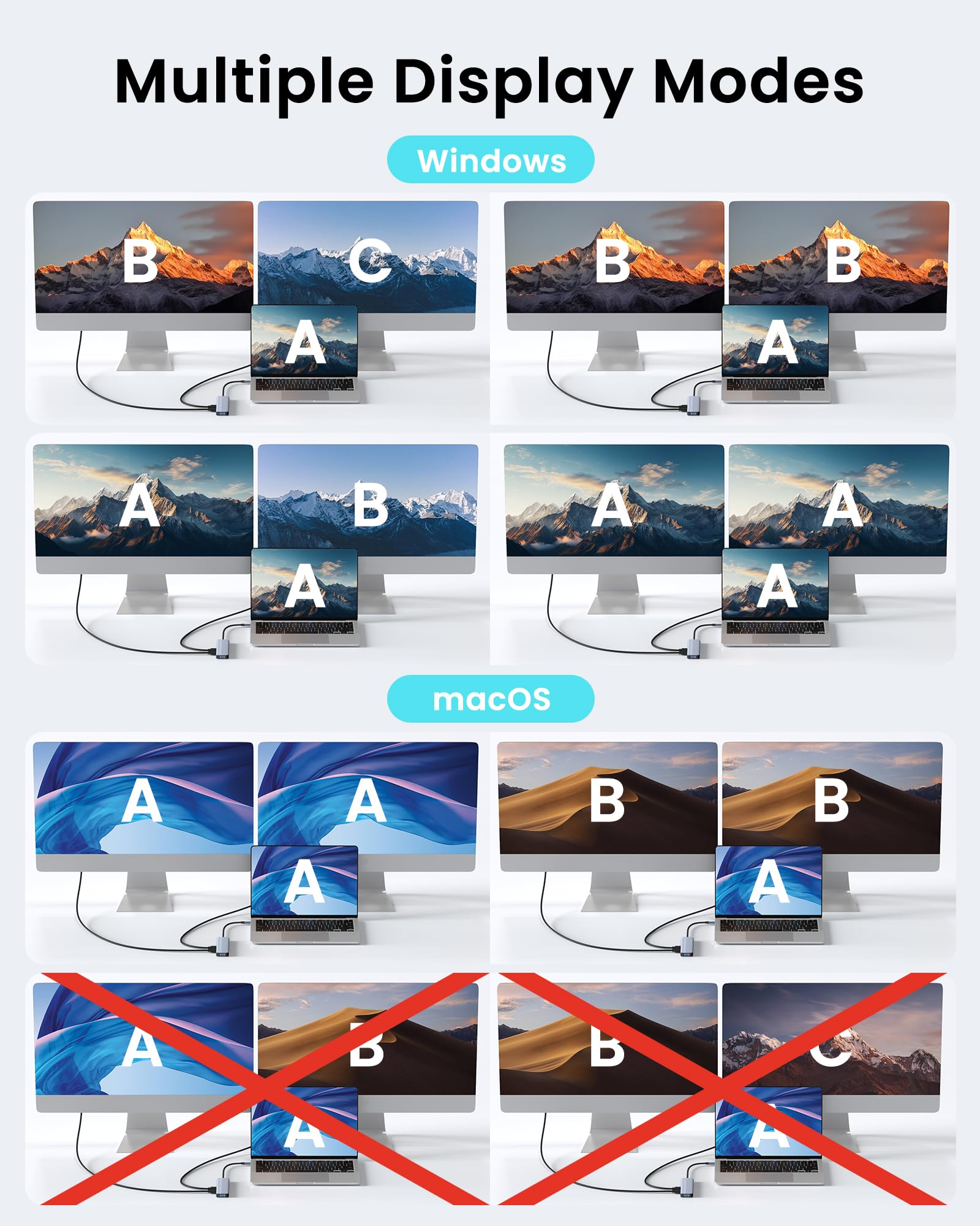 - Dual 4K@60Hz HDMI: Connect two external displays at up to 3840x2160 resolution and 60Hz for smooth multitasking and sharp visuals.