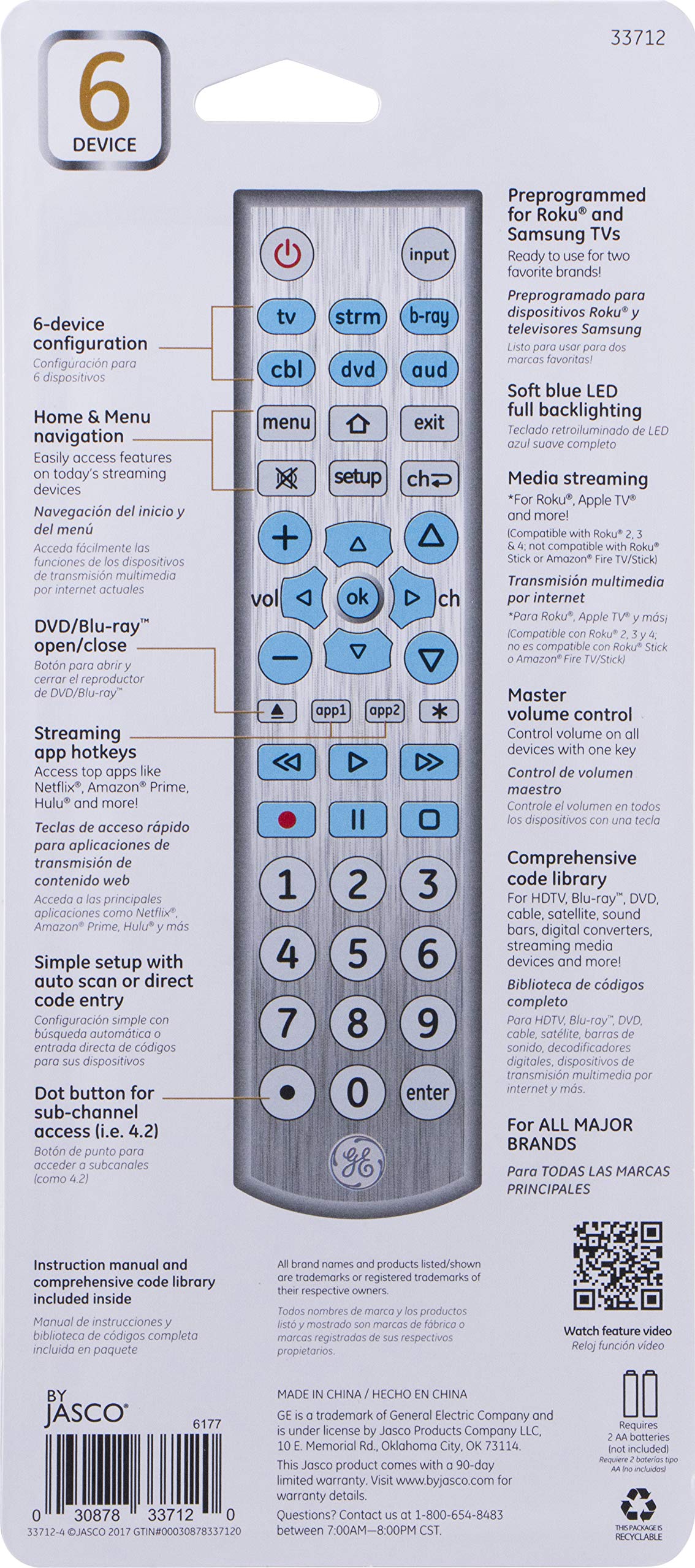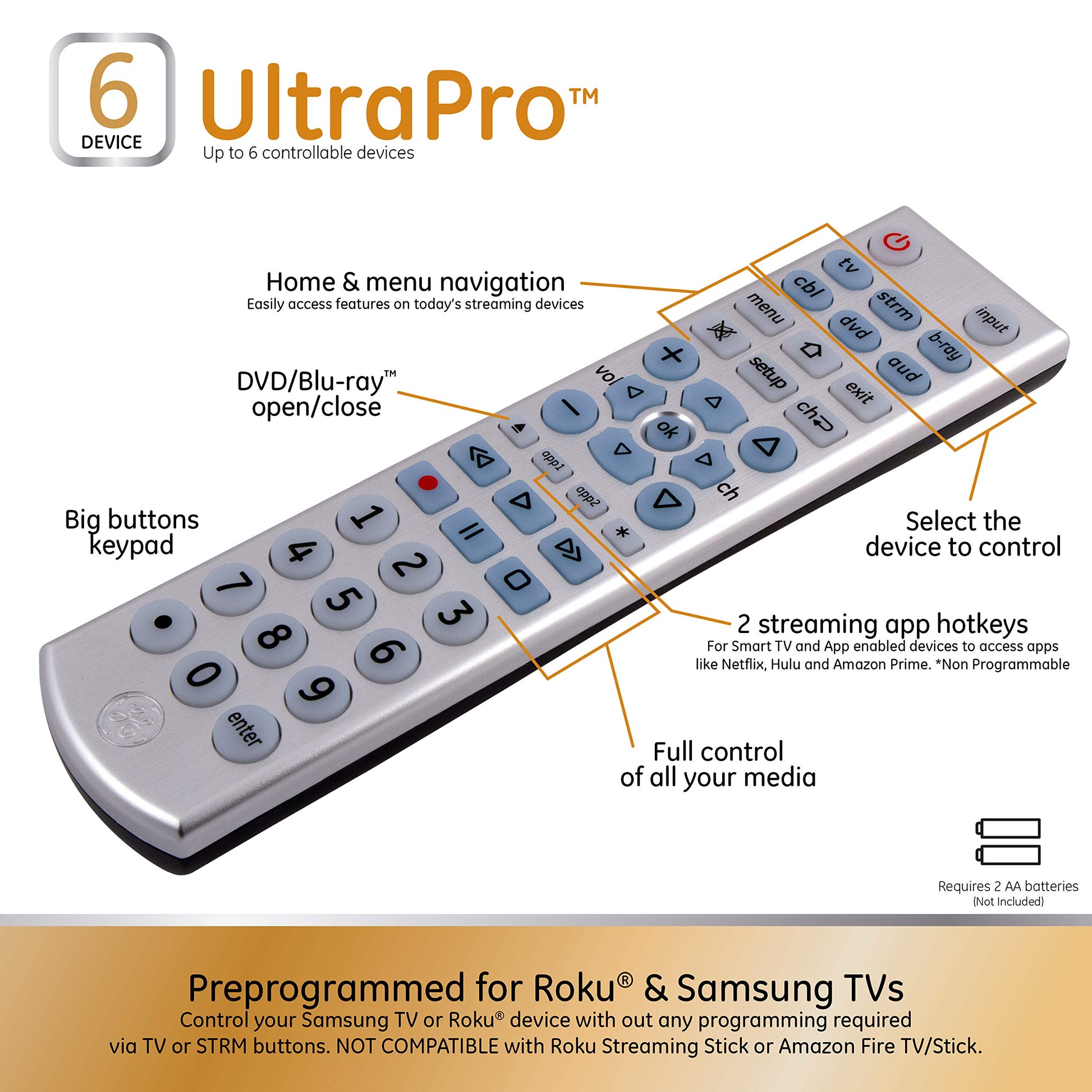 GE Big Button Backlit Universal Remote Control for Six Devices