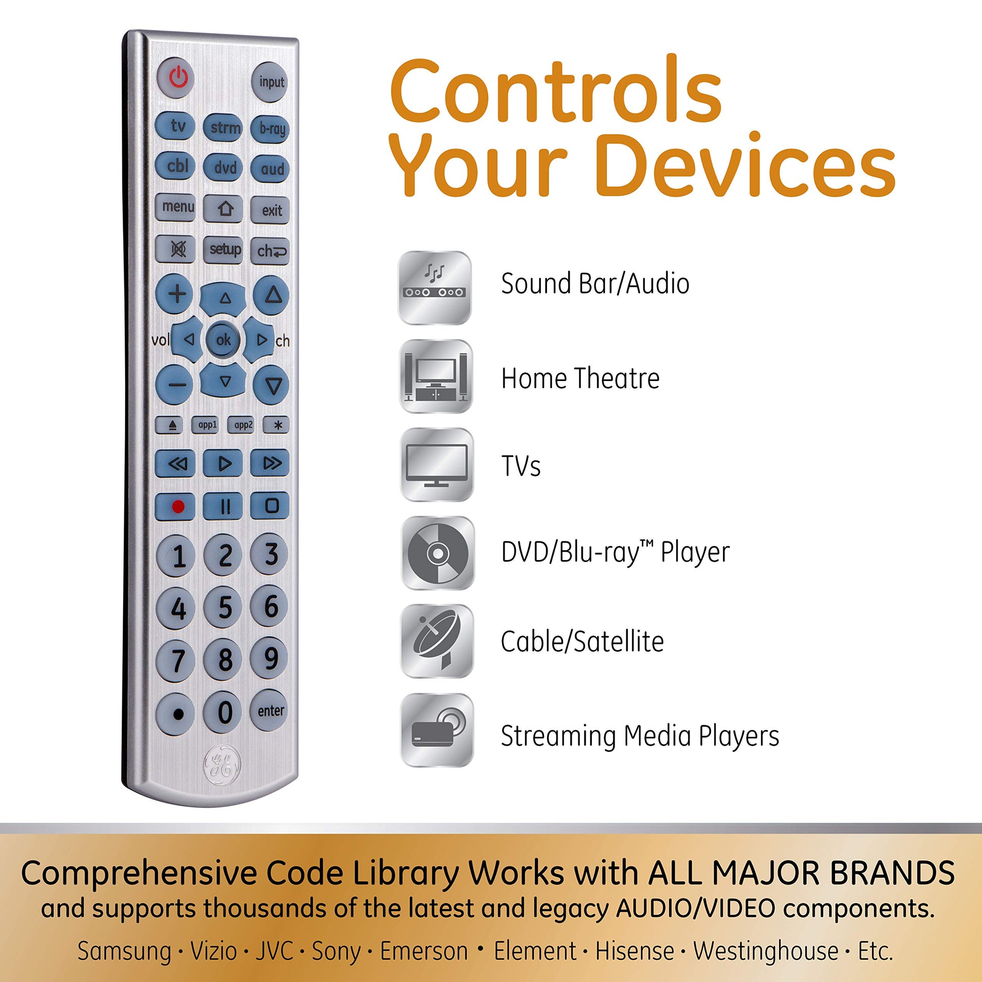 - Six Device Control: Manage up to six devices simultaneously, eliminating the need for multiple remotes cluttering your coffee table.
