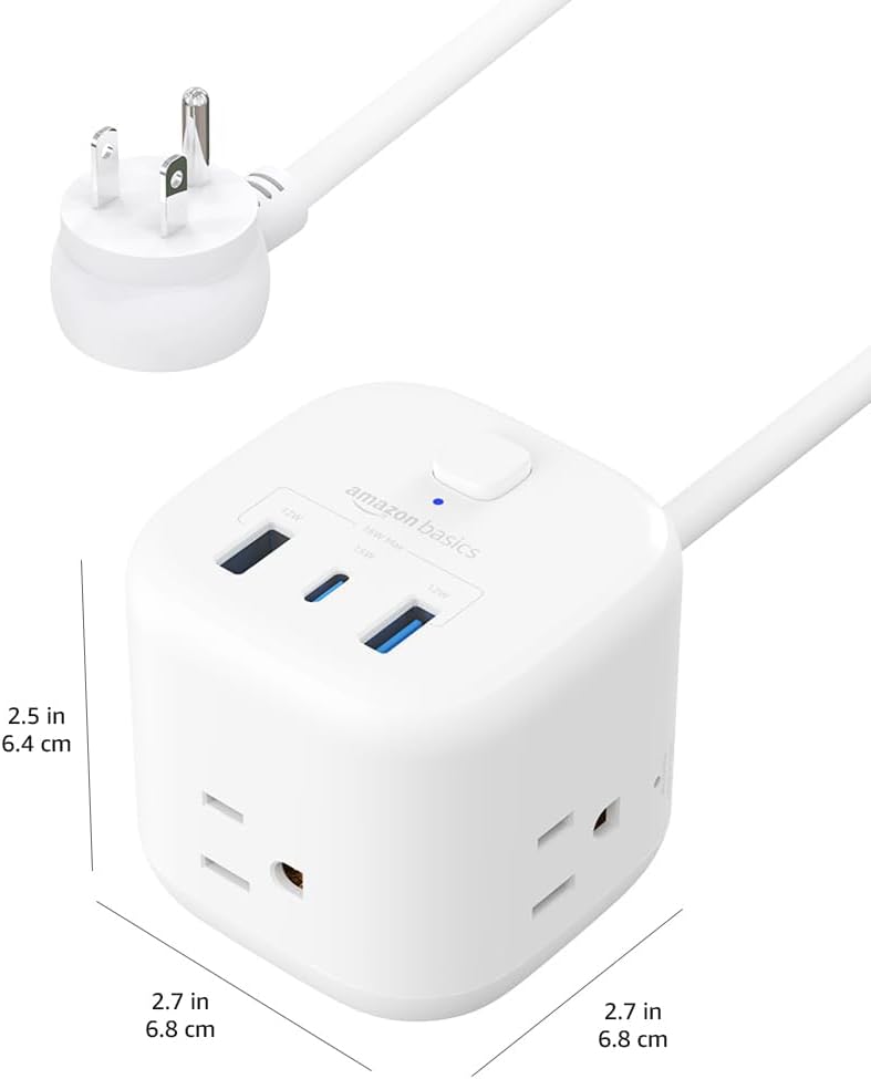 Amazon Basics Power Strip Cube 3 Outlets USB C Compact