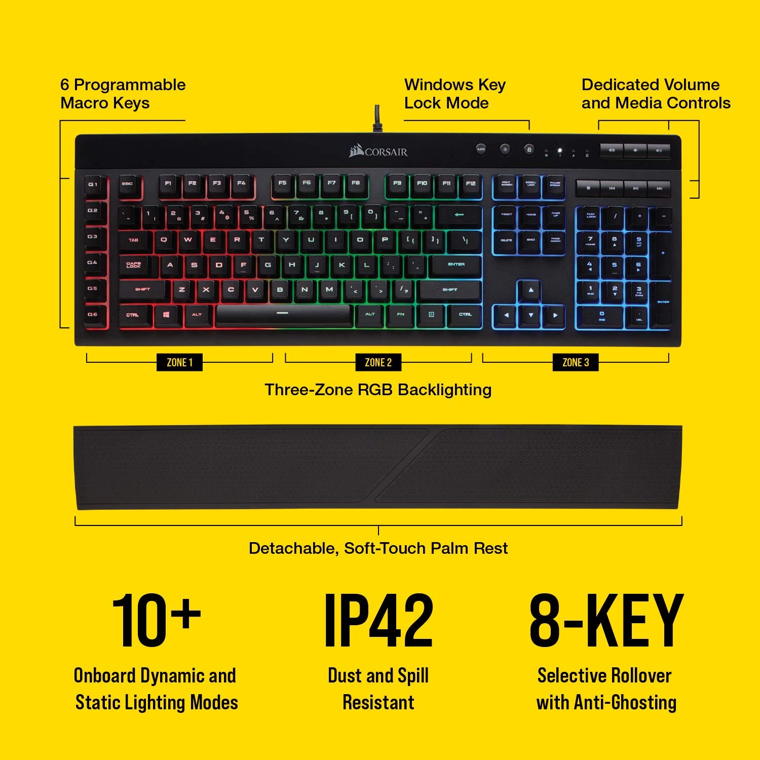 - Compact and Lightweight: Ideal for gamers on the go, the K55 is lightweight and portable, making it easy to transport to tournaments or LAN parties.